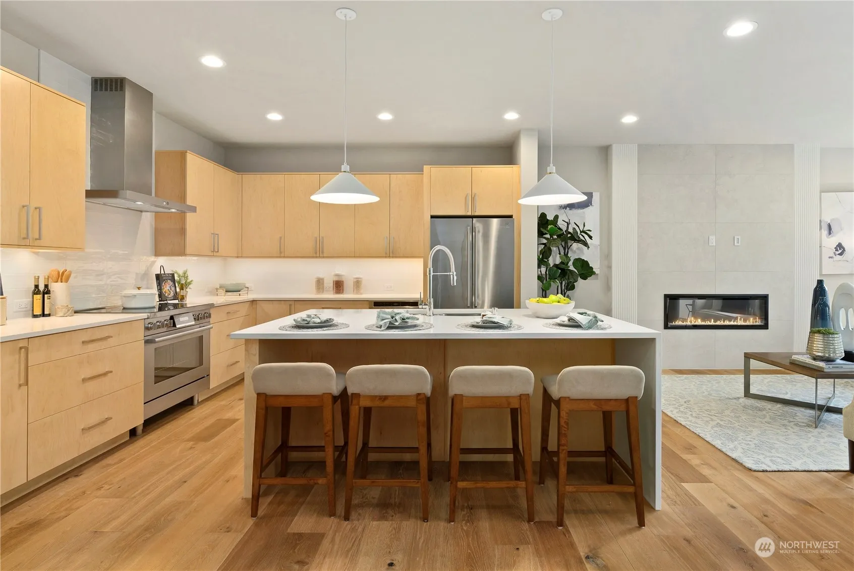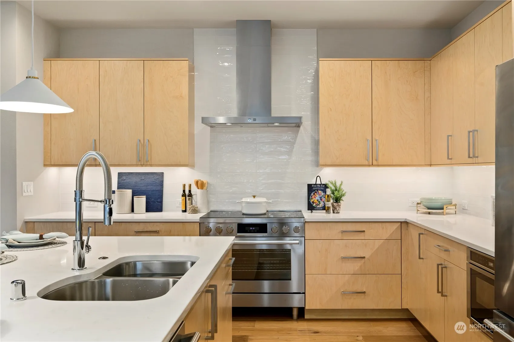 Merit Homes presents Veena Lot 1, its newest Urban Series 2 story home and last one left in this community! 3 bed, 2.5 bathroom open great room floor plan with a private fully fenced backyard and patio in the desirable Rose Hill neighborhood. Everything you have come to expect from Merit Homes with this NW Contemporary residence filled with luxurious details and tons of natural light with extensive windows. The main floor opens to a light filled open entry leading to a modern kitchen with a large quartz island with the latest induction cooking range. Primary suite offers a sizeable walk-in closet and spa like bath with soaking tub and large shower with bench seating! Great location with Major employment and everything Kirkland has to offer!