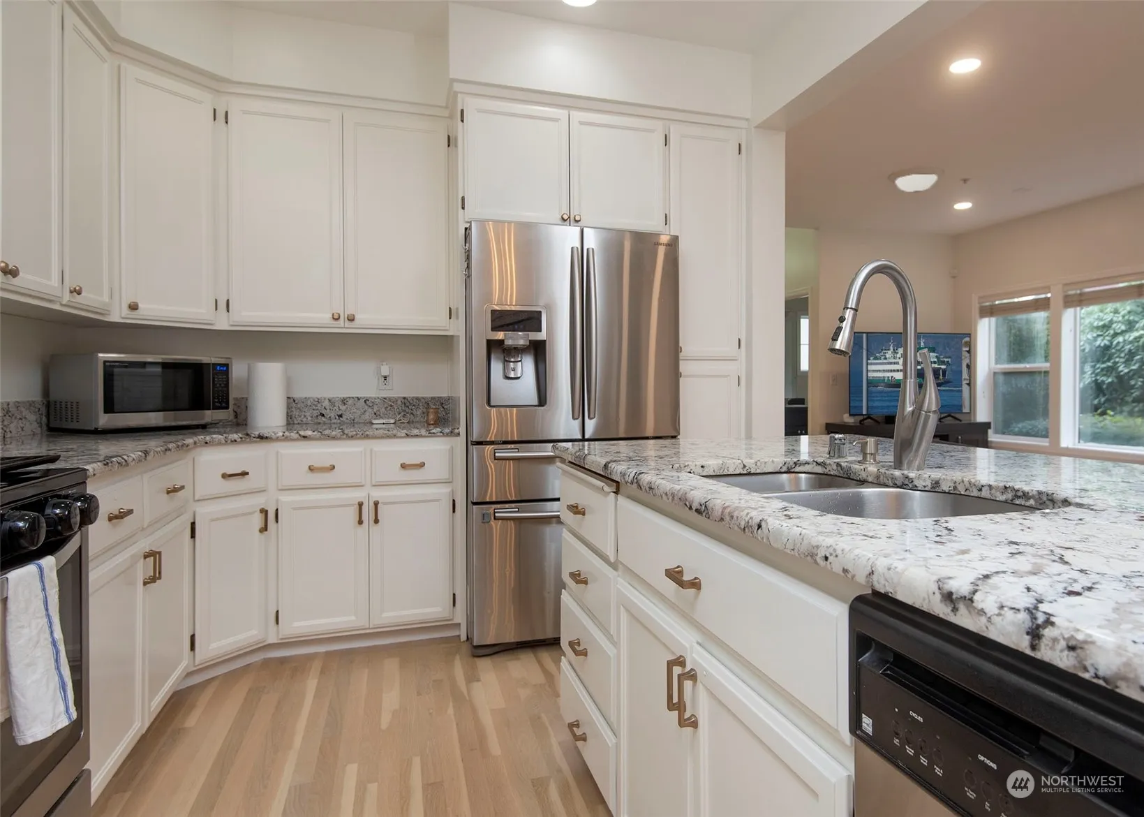 Corner Townhome Unit in the Rose Hill Kirkland neighborhood. Walls of windows, High ceilings & abundance of natural light. Welcome home to an open Main living level concept that features a Chefs kitchen, fully equipped w/SS kitchen appliances & island w/a bar seating area. Relax in the living room w/a cozy fireplace, enjoy a designated dining area, 1/2 bath & a private fenced backyard. Upstairs you will find 3 bedrooms including the Primary bedroom w/a spa like bathroom & walk in closet. 1car garage w/an extra parking space. Well managed HOA, no special assessments, no rental cap. Excellent Lake WA schools! Close to Google, Microsoft, Facebook, DT Kirkland & Costco. Recent upgrades & updates such as a Newer Roof, HVAC & many more. Must See!