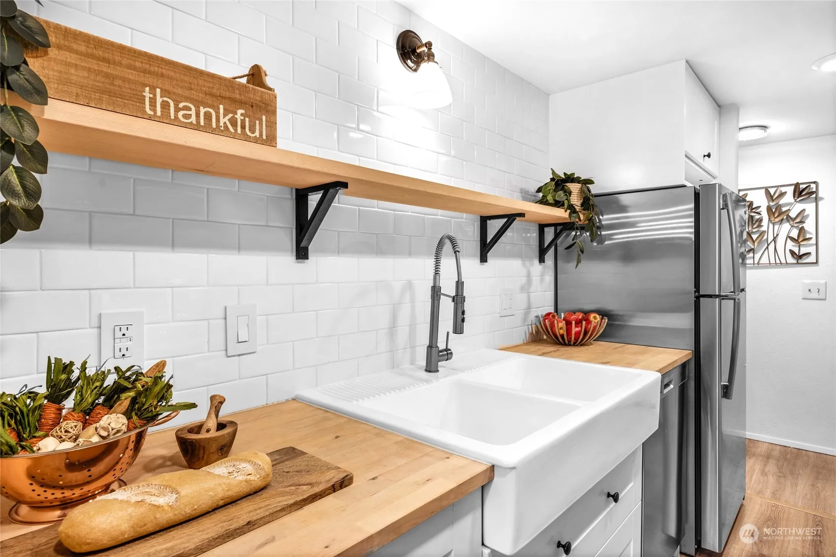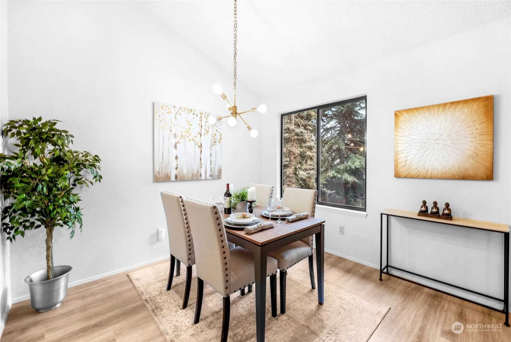 BEAUTIFULLY UPDATED, EAST-FACING, TOP FLOOR UNIT W/ COMMANDING VIEWS IN THE FRONT & SERENE PRIVACY IN THE BACK. New paint, all new wood laminate flooring, new range, new lighting, refinished sink and bathtubs – WOW! Professionally cleaned & pre-inspected for buyer confidence. Sky-high vaulted ceilings make the unit live large. Generous bedrooms easily fit king size beds w/ room to spare. Private corner balcony (w/ storage) nestled in nature’s greenery imbues a tranquil ambiance. Central heating. Well-managed HOA. No special assessments in over 2 decades – impressive! Grocery stores, banks, restaurants across the street. Village at Totem Lake, Evergreen Hospital, and freeway access minutes away. Close to EVERYTHING! Convenience at its BEST!