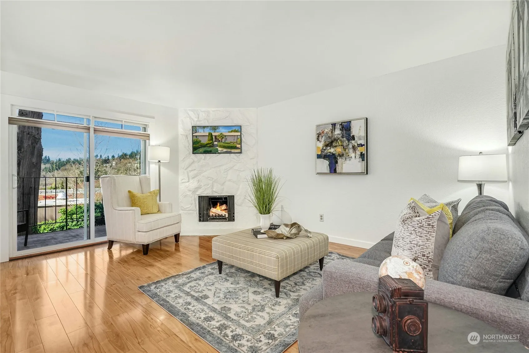 Welcome to your cozy nest in the heart of Juanita! This light and bright condo with fresh paint and new carpet is bursting with the opportunity for fun-filled living. Inside enjoy the warmth of a cozy fireplace in the living room—a perfect spot to spark memories. A sliding glass door opens to the covered patio, where views of landscaped greenery and peek-a-boos of the lake bring the outside in. With 1 bed and 1 bath, this home serves as the perfect anchor for your on-the-go lifestyle. Plus, with extra storage space, you’ll have plenty of room to store your outdoor gear for nearby adventures at the lake. Whether hitting the beach, exploring the village, or seeking an easy commute via I-405, this Juanita gem is the perfect place to call home.