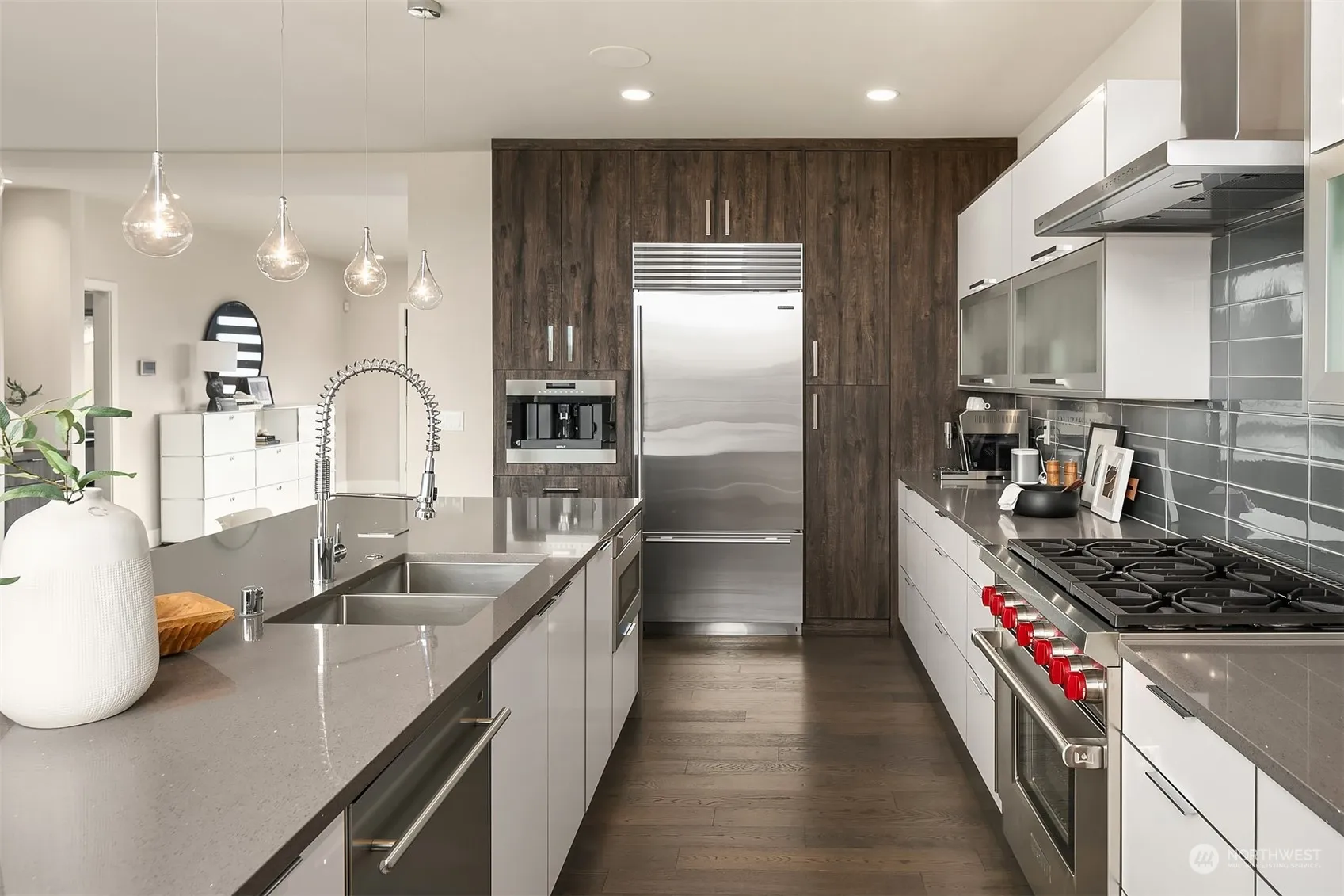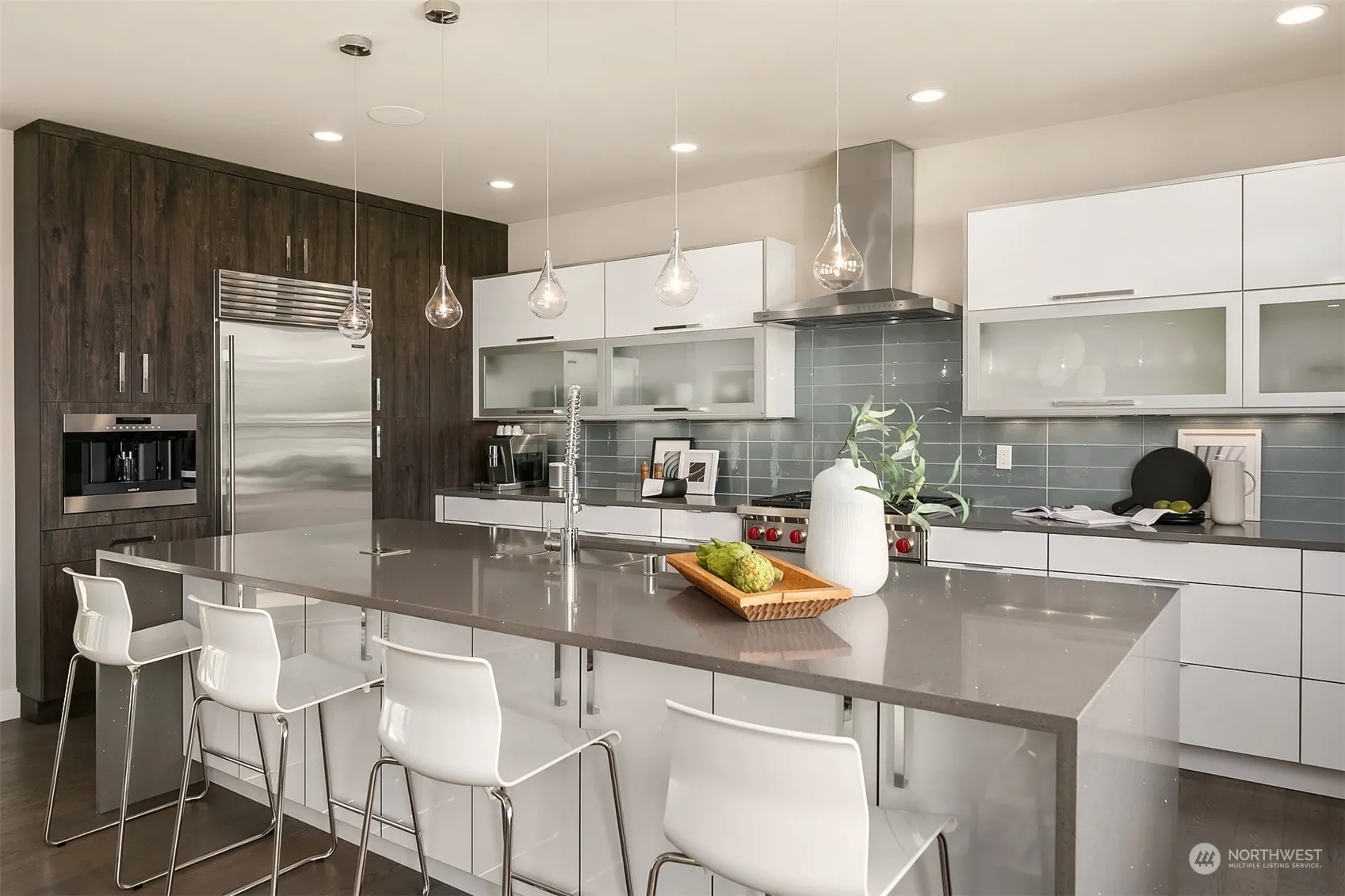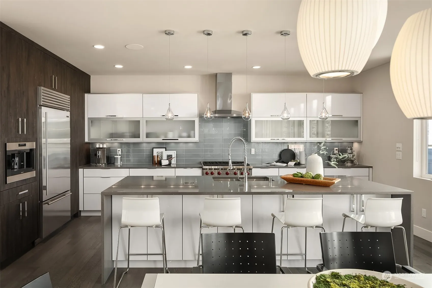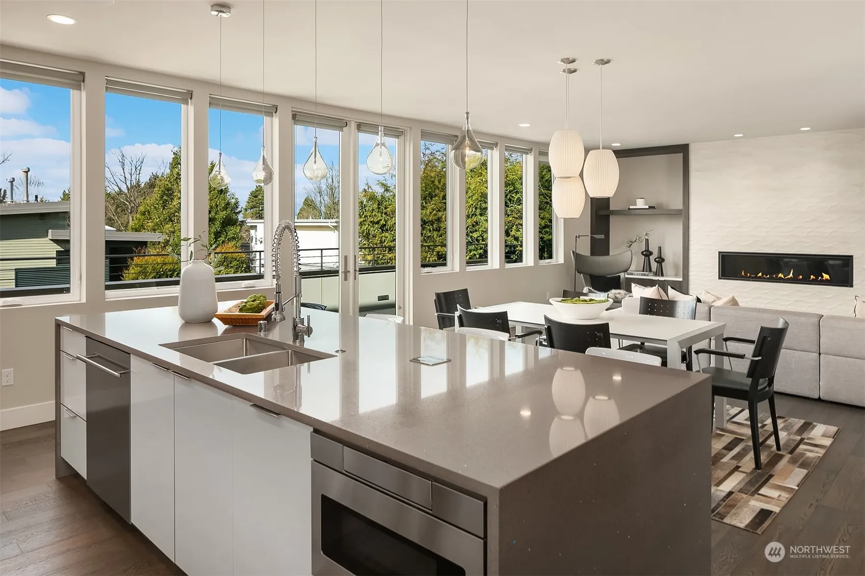 Ideally located in the highly sought-after East of Market neighborhood. This home was a custom built, Built-Green Certified, builders’ own home featuring an exceptional floor plan, high-end finishes, and West-facing views of Lake Wa, Seattle city skyline, and the Olympic Mountains. Large and light-filled entry featuring a custom steel floating staircase and walls of windows. Main floor boasts a guest suite with full bath, stylish great room with 72” linear gas fireplace, and epicurean kitchen equipped w a full Sub-Zero appliance package. Awe-inspiring primary suite with views, gas fp, private view deck, 5-piece bath w wet room + heated floors, and WIC. Lower level: media room, wine cellar, add’l bed + full bath. Alley access 2-car garage.
