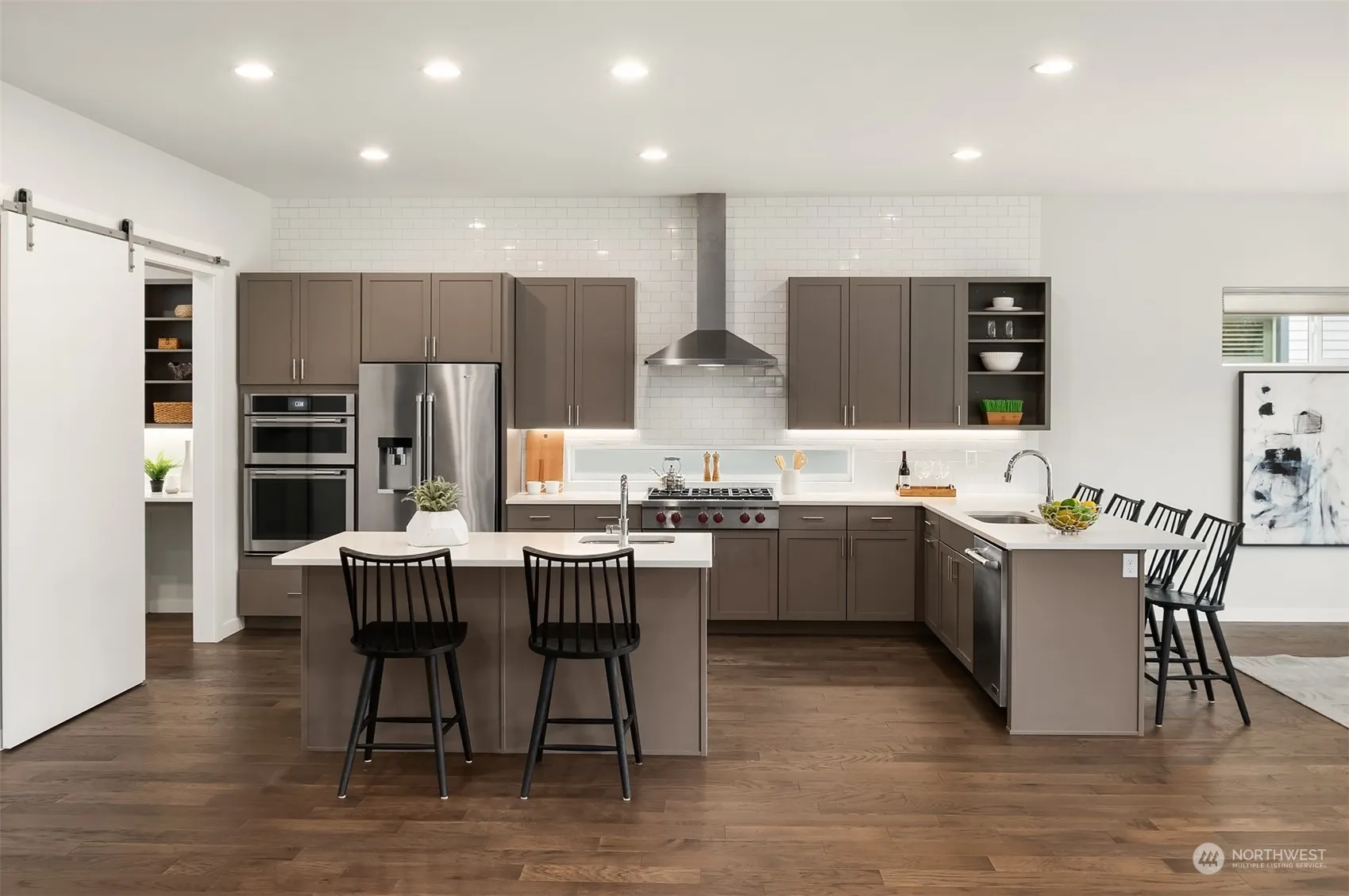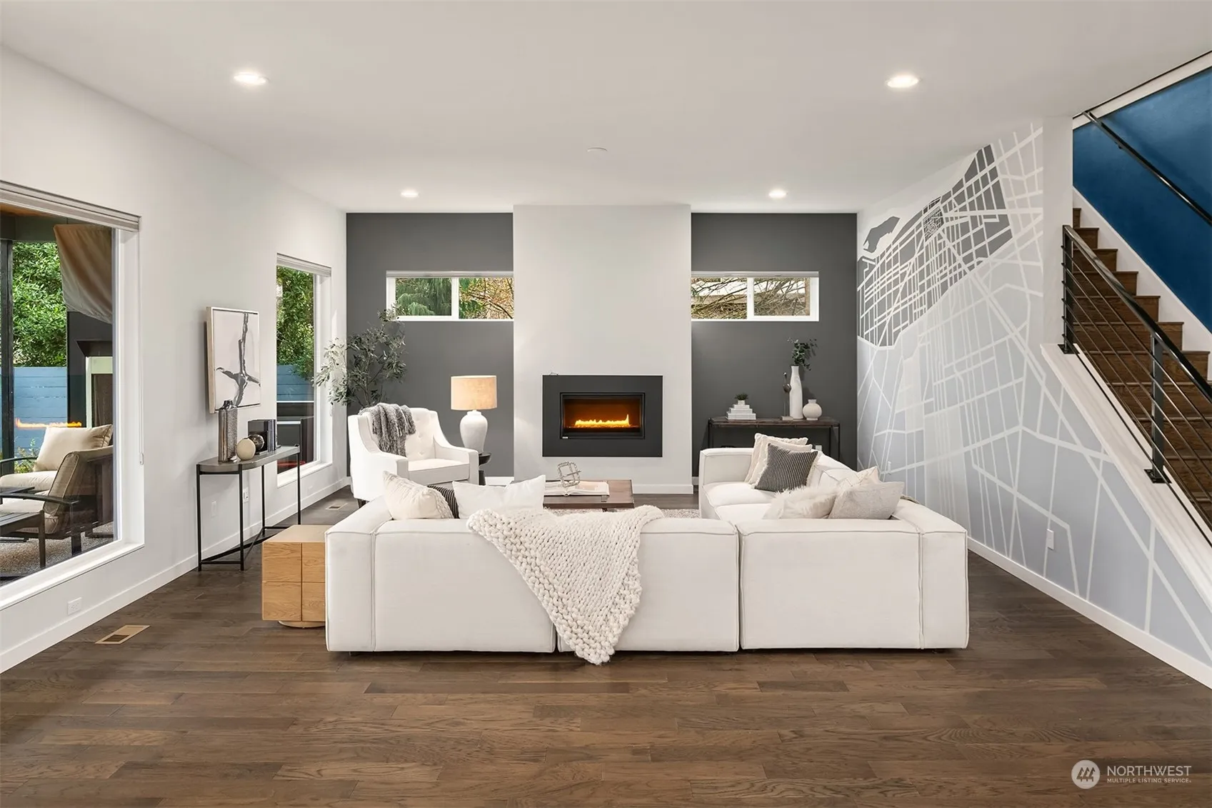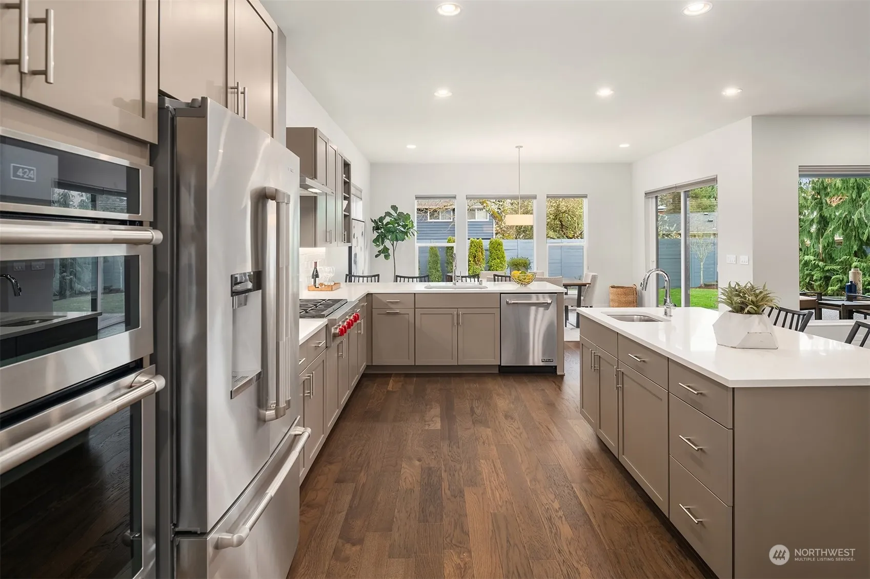Nestled in a prime location near Juanita Beach Park and Juanita Village, this meticulously designed residence offers modernity and charm. Inside, discover an idyllic open floor plan that connects the living, dining, and kitchen areas, creating a polished ambiance. A ground-floor bedroom with an attached bath offers versatility, while upstairs, the master suite offers space and comfort with dual walk-in closets. Outside, the large, fully fenced, private yard features lush greenery and ample space for outdoor entertaining, complete with a fireplace and TV. Premium fixtures and appliances, enhance the home’s allure while LEED certification ensures energy efficiency.