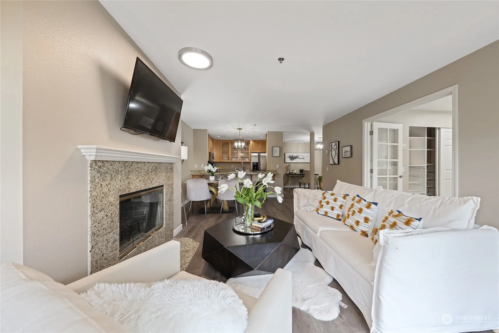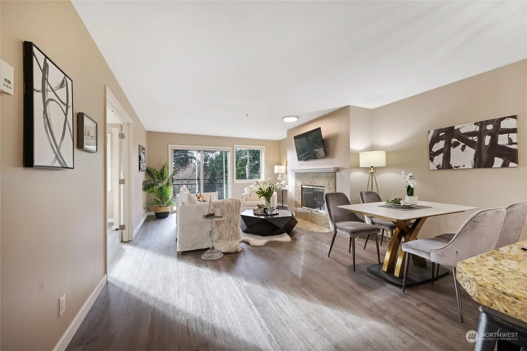 Award winning Medina Elementary school! Enjoy downtown Bellevue living in this quiet yet centrally located condo. Featuring 2 bedrooms, 1.75 bathrooms, a modern kitchen, a dining room and a living room with fireplace. Newly upgraded with vinyl plank floors, renovated bathroom cabinets, mirrors, lights, and brand-new appliances including a washer, dryer, microwave and dishwasher. Every detail has been carefully considered. The primary suite features double closets, while the remodeled second bedroom includes French doors and a bookshelf. Two assigned parking spaces, including one in the garage with storage. Walking distance to Bellevue Downtown park, shopping and restaurants. Don’t miss the private balcony and the partial lake view!