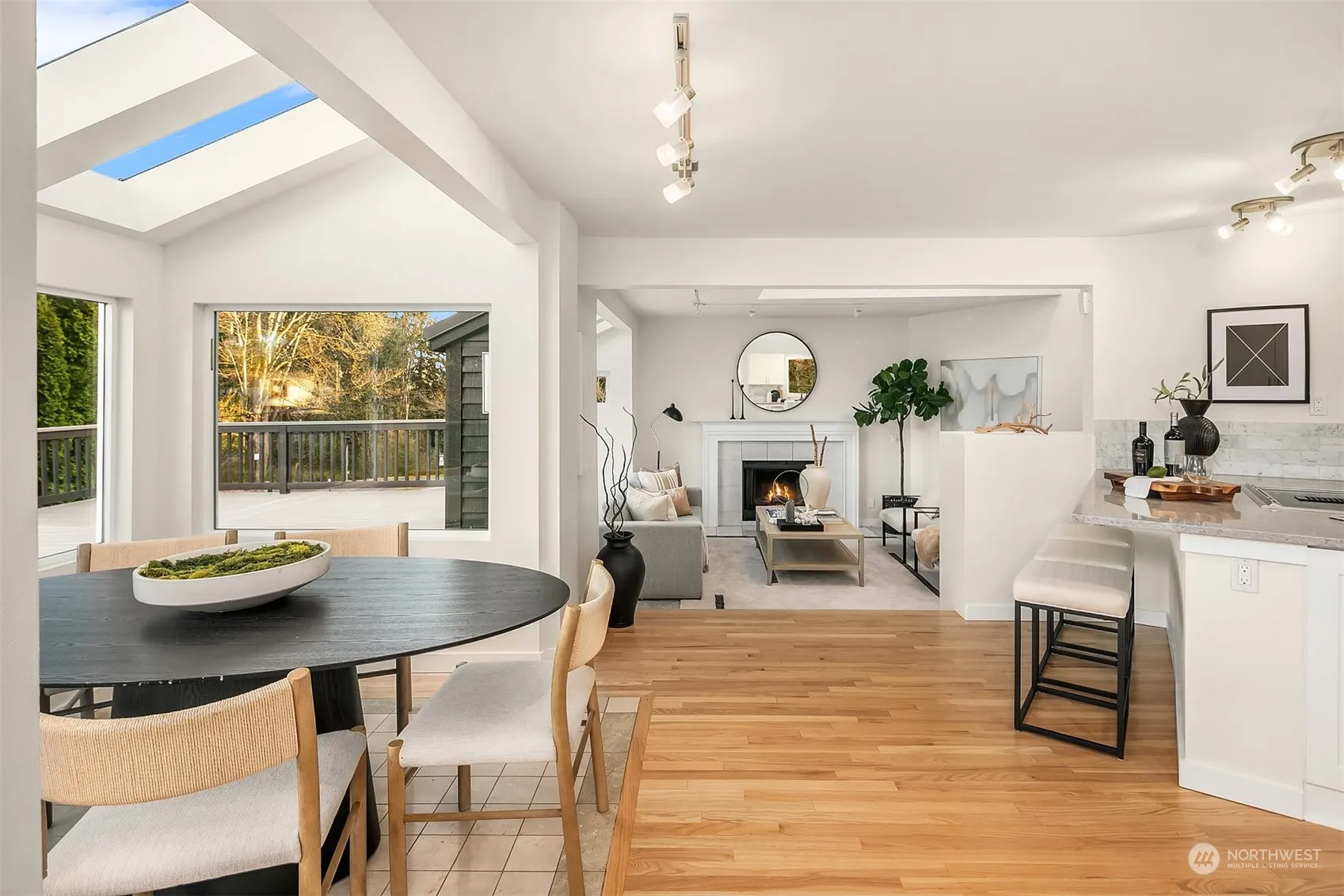Set on a private and sunny corner lot in the East of Market neighborhood, walking distance to Crestwoods Park, Kirkland Middle, and Peter Kirk Elementary, this completely remodeled NW contemporary home offers light-filled interiors, incredible outdoor entertaining, a main floor guest bed/office + 3/4 bath, and more. Newly remodeled with vinyl windows, skylights, new exterior/interior paint, freshly refinished hardwoods, new light fixtures, bathroom vanities, and an updated kitchen; this home is ready for Spring gatherings and relaxing weekends at home. Enjoy outdoor entertaining, with a massive 900sf deck, new landscaping and a fully-fenced backyard. Oversized two-car garage, A/C, security system and sauna complete this spectacular home.