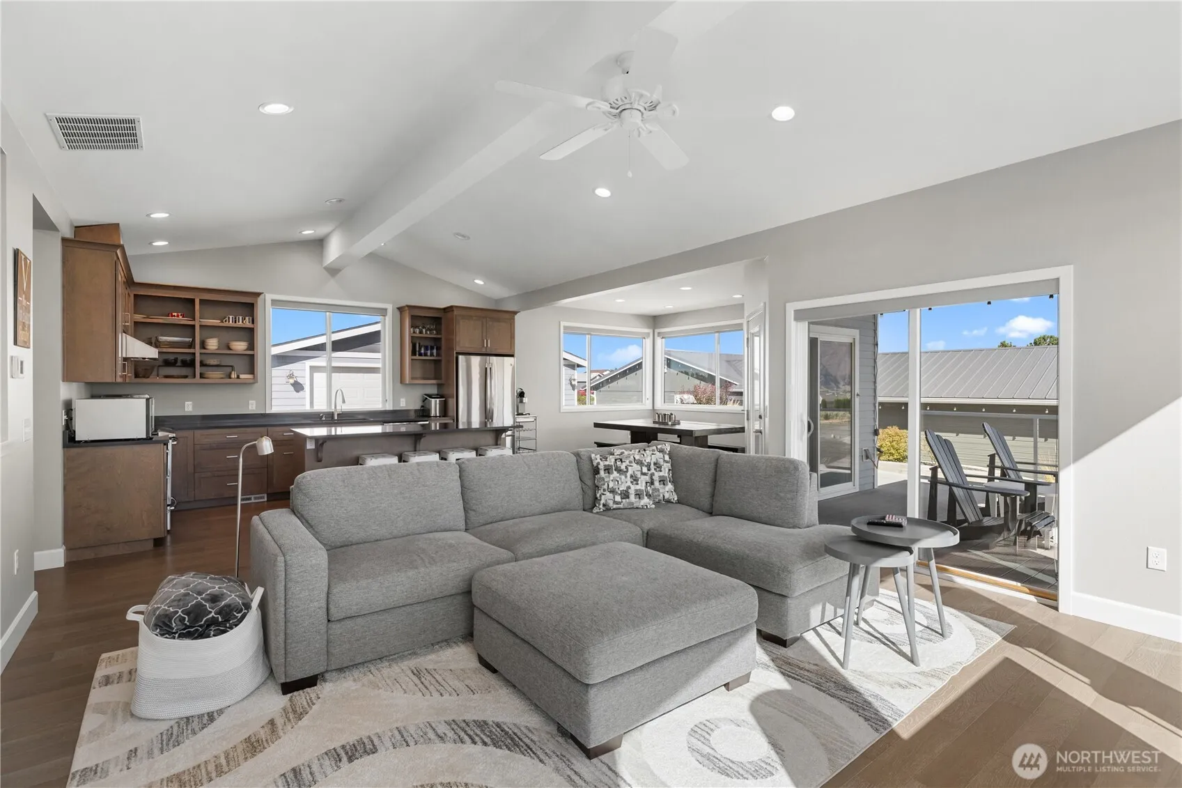 Live where the view is everything. This elegant daylight rambler in Desert Aire offers sweeping, unobstructed views of the Columbia River and surrounding mountains from nearly every room. Nestled at the end of a quiet cul-de-sac, this 3-bedroom, 2.5-bath home spans over 2,100 sq ft and includes bonus room, vaulted ceilings, and an open-concept layout that maximizes natural light and panoramic scenery. The chef’s kitchen features granite countertops & stainless steel appliances. Enjoy peaceful mornings & stunning sunsets from the covered back patio. Complete with an oversized detached 3-car garage -this is riverside living at its finest. Amenities Include Golf, airfield, community pool and park, tennis courts, gym, trails, and boat launch.