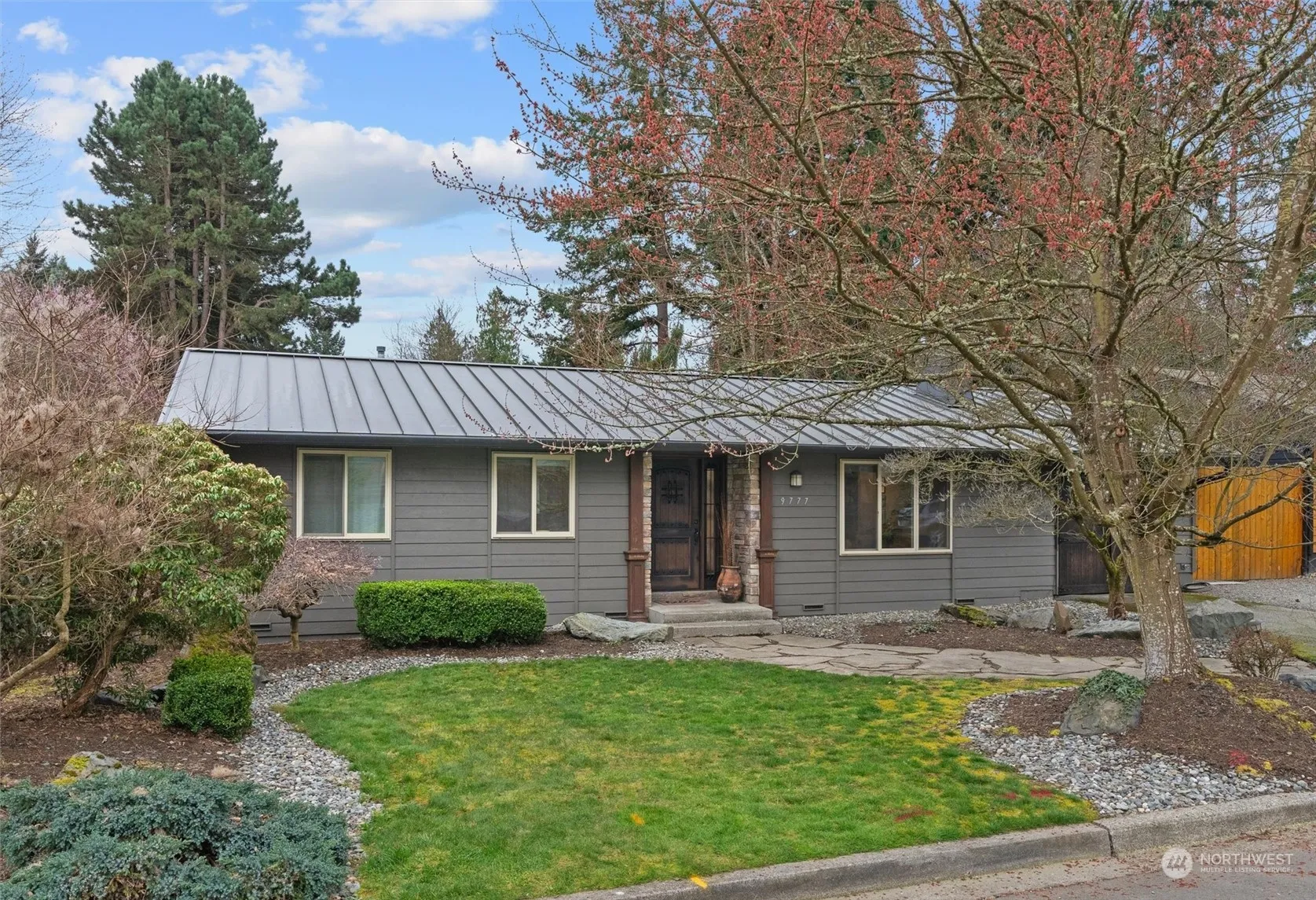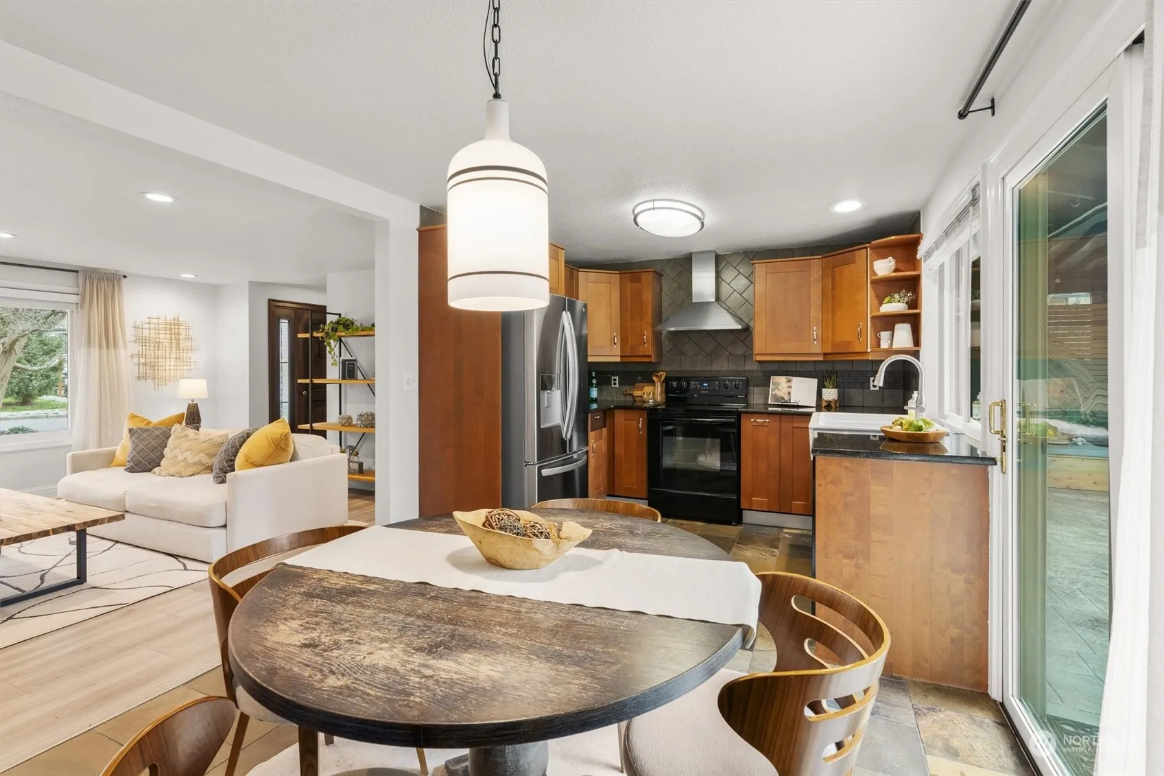 Sleek rambler in Juanita w/modern comfort & spectacular grounds. Inside find updated bathroom & kitchen, new floors & spacious living areas w/cozy fireplace.Bask in natural light w/3x pane windows & Sola-Tubes for enhanced brightness.Enjoy Nest lighting & heating for optimal comfort & convenience.Ample storage & 50 yr metal roof ensure peace of mind.Outside private oasis has over 1000 sf of hardscaping w/beautifully-stamped concrete patio & more.Entertain year-round under covered space w/custom outdoor couch, hot tub, hanging fireplace & surrounding seating.Powered outdoor dwelling has 200sf space+ loft for office potential.Excellent location close to beach, Juanita Village, easy commuter access & highly-rated LW schools.