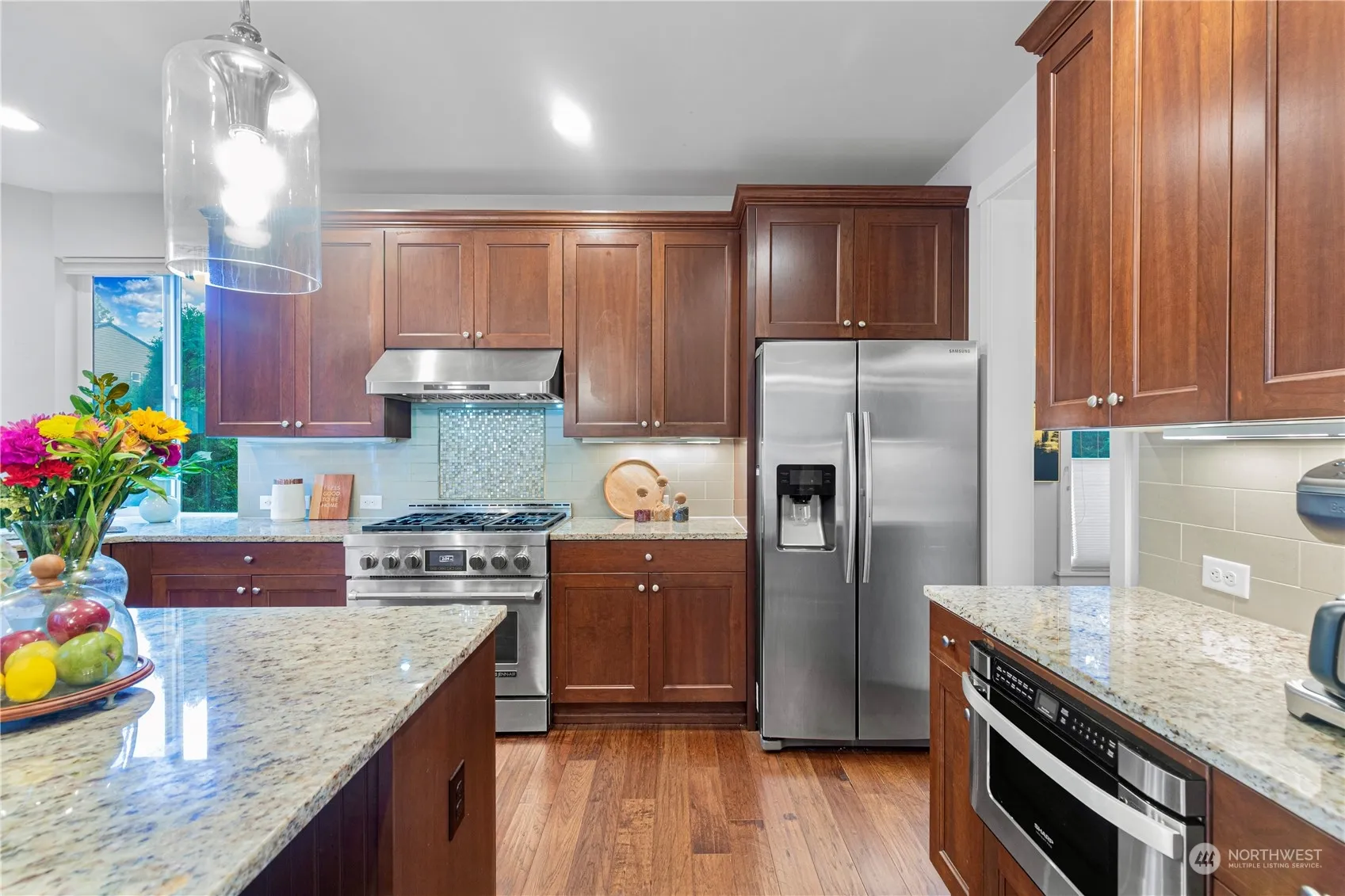 The house located in 2024 most popular Newport Sr. High School area. The BSD school bus conveniently stops in front of the house for pick up & drop off. The driveway provides easy turnaround space for 3 cars & accommodate parking for up to 7 cars. Main level features a front entry, lobby, family rm, dining rm, living rm & kitchen w/ oversized island, large & fully-fenced backyard w/ patio offers west exposure. Upper level boasts spacious master suite w/ Spa Bath & walk-in closet, along with 3 additional bdrms & study/leisure area or exercise space. Lower level includes Guest Suite w/ full bath & separate entry, and an extra-large garage for 2 cars. The house meticulously maintained by its original owner. A/C was newly installed in 2021.