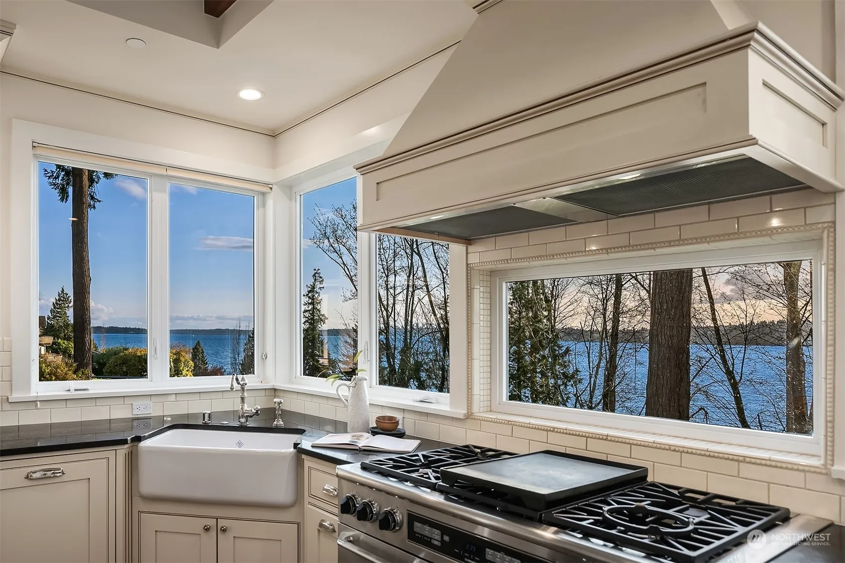 Gracefully set alongside Lake Washington’s waterfront Kiwanis Park and nestled in coveted West of Market. This private & stately custom residence boasts astonishing views from every level and the perfect floor plan, with sophisticated and timeless design. Designed to experience single-level living with three bedrooms located on main including the sumptuous primary suite, a gourmet kitchen, & grand great room with vaulted ceilings and exposed natural wood beams. Lower level entertainment floor equipped with a kitchenette bar, 600-bottle wine cellar, bespoke office, guest en-suite, and media/gym. Upper floor flex space, potential ADU with a separate entrance + 3/4 bath. Take in west-facing views from the resplendent backyard & expansive deck.