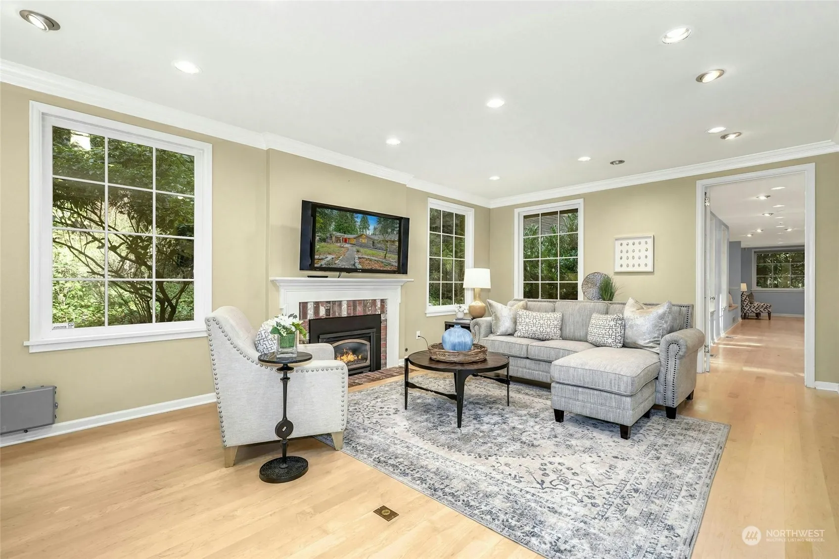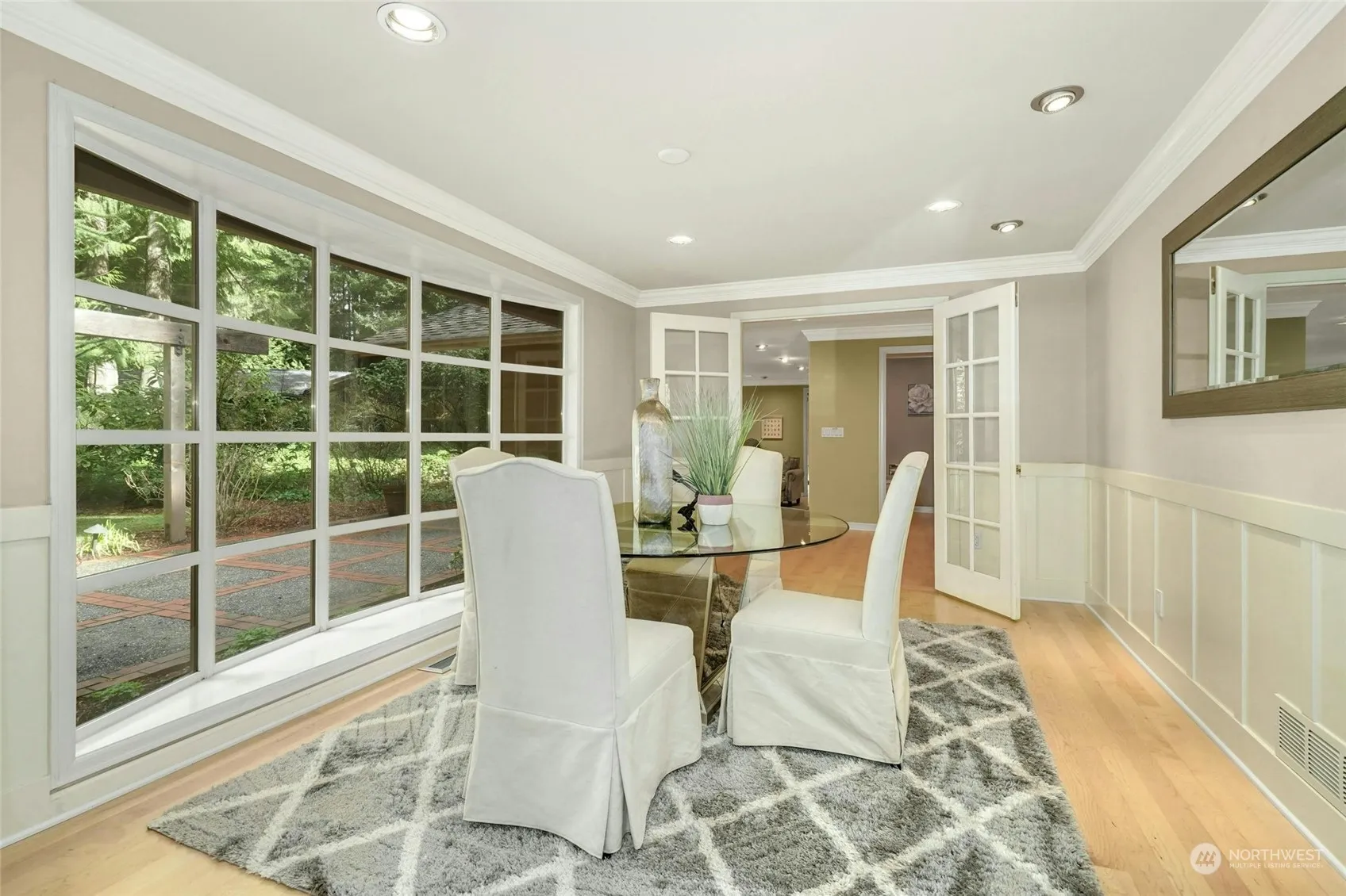 Welcome home to a retreat for the senses. Tucked away on a quiet cul-de-sac, it’s serene and inviting one level living at its best! Symphonies of entertaining spaces w/walls of windows that embrace & frame, the beauty of the NW w/sprawling decks & patios harmoniously marrying the indoor & outdoor spaces. At the heart of the home is a generous great room, anchored by a dream, chef’s inspired kitchen. The owner’s suite is a retreat away from it all with a sumptuous spa bath that soothes the senses, a secondary primary suite, complements the additional bedrooms with Jack & Jill bath. Buttery hardwood floors throughout, an impressive wine cellar, comforting AC, an outdoor trampoline & richly appointed grounds. Live & love life in Bridle Trails!