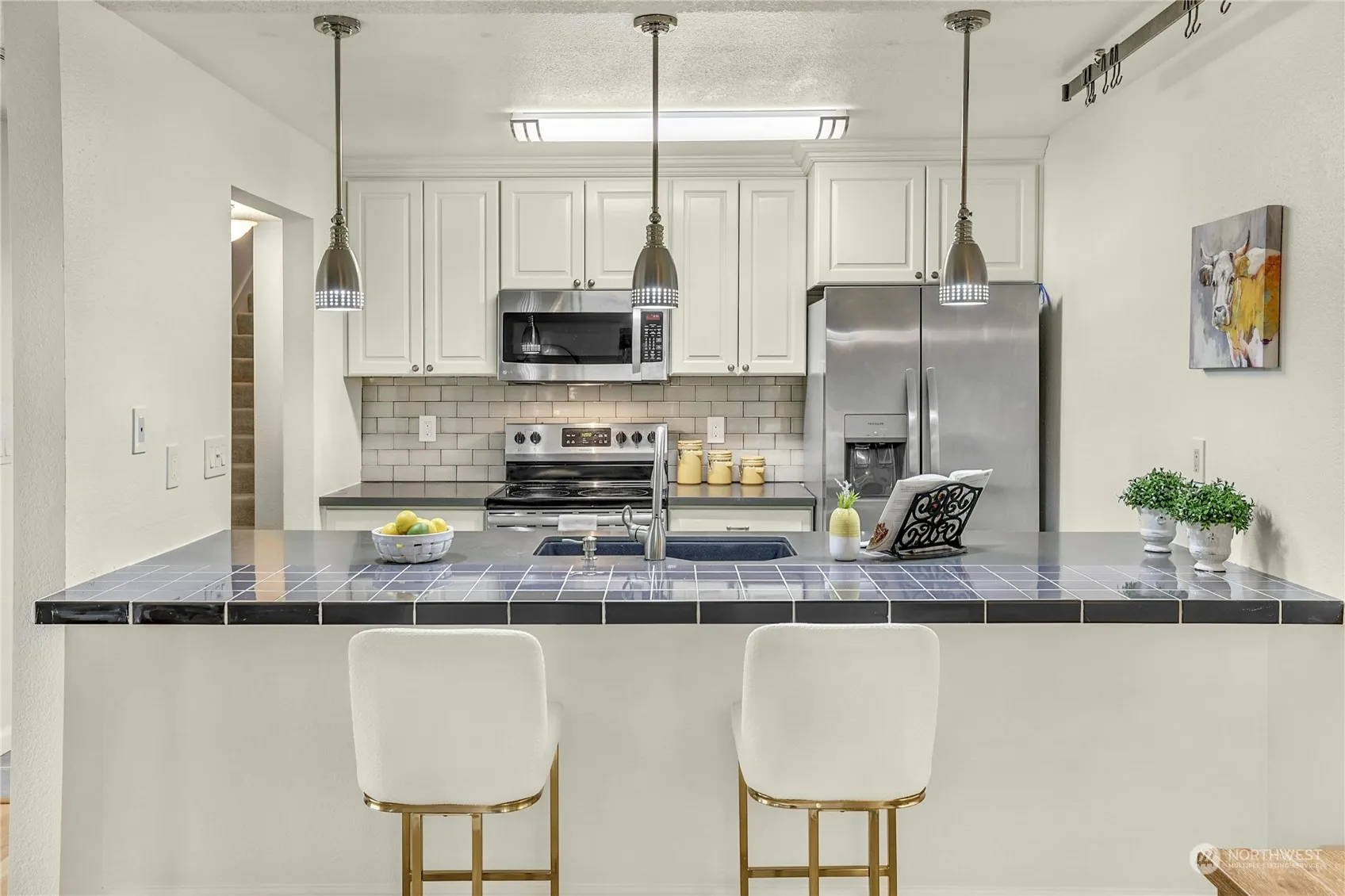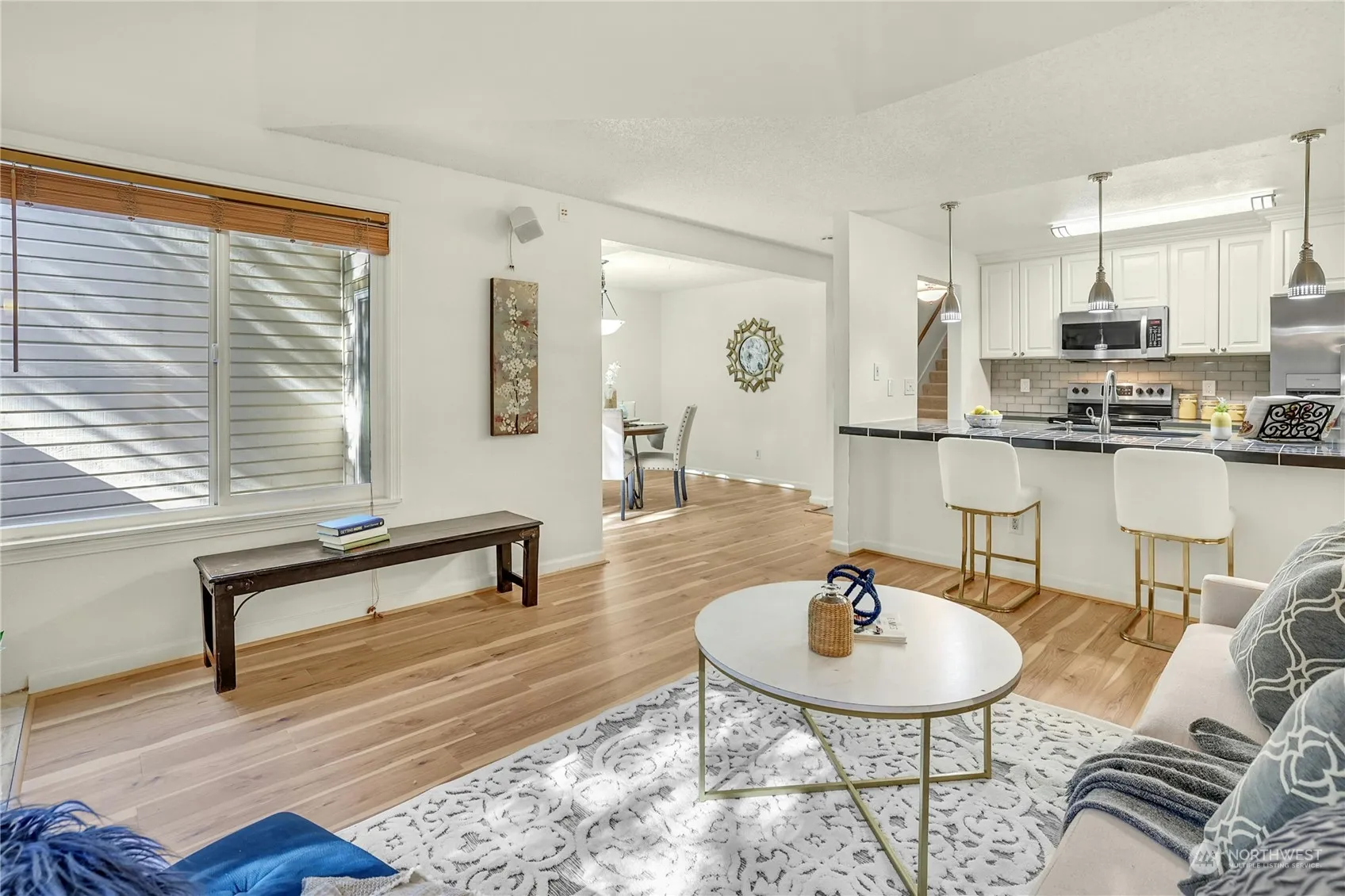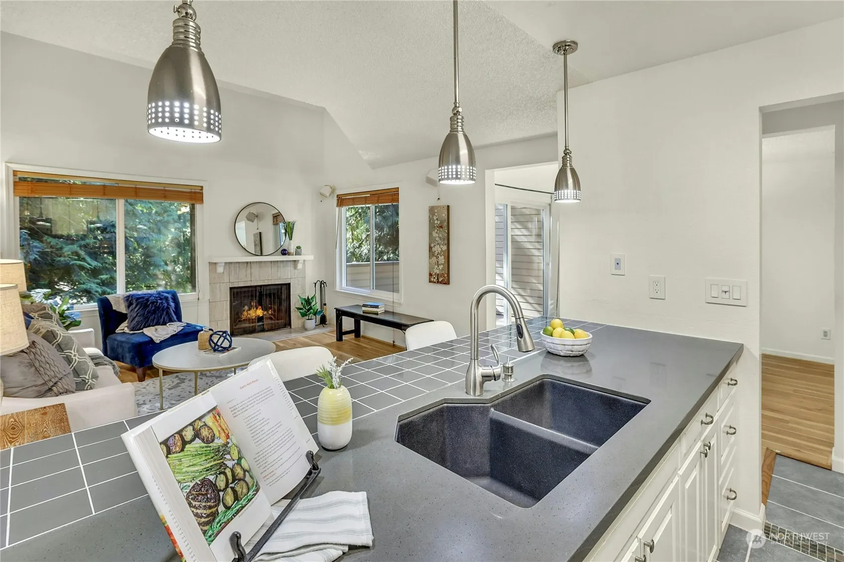 Welcome to your expansive top-floor 2 level condo in Bellevue’s heart, offering a generous layout including 3 large bedrooms plus a den, and 2 bathrooms. The kitchen shines with stainless steel appliances and bar seating that ensures a seamless flow into the dining and living area, complete with a cozy fireplace.The primary suite boasts an en-suite 3/4 bathroom for added privacy. Condo also features brand new carpets and fresh interior paint, enhancing its appeal. Set apart from lower- level units, this condo boasts vaulted ceilings and attic storage, accentuating its spaciousness. Conveniently located next to Pro Club, it’s a short walk to Microsoft and local parks. Includes covered parking and a storage unit, & NO rental cap! Preinspected
