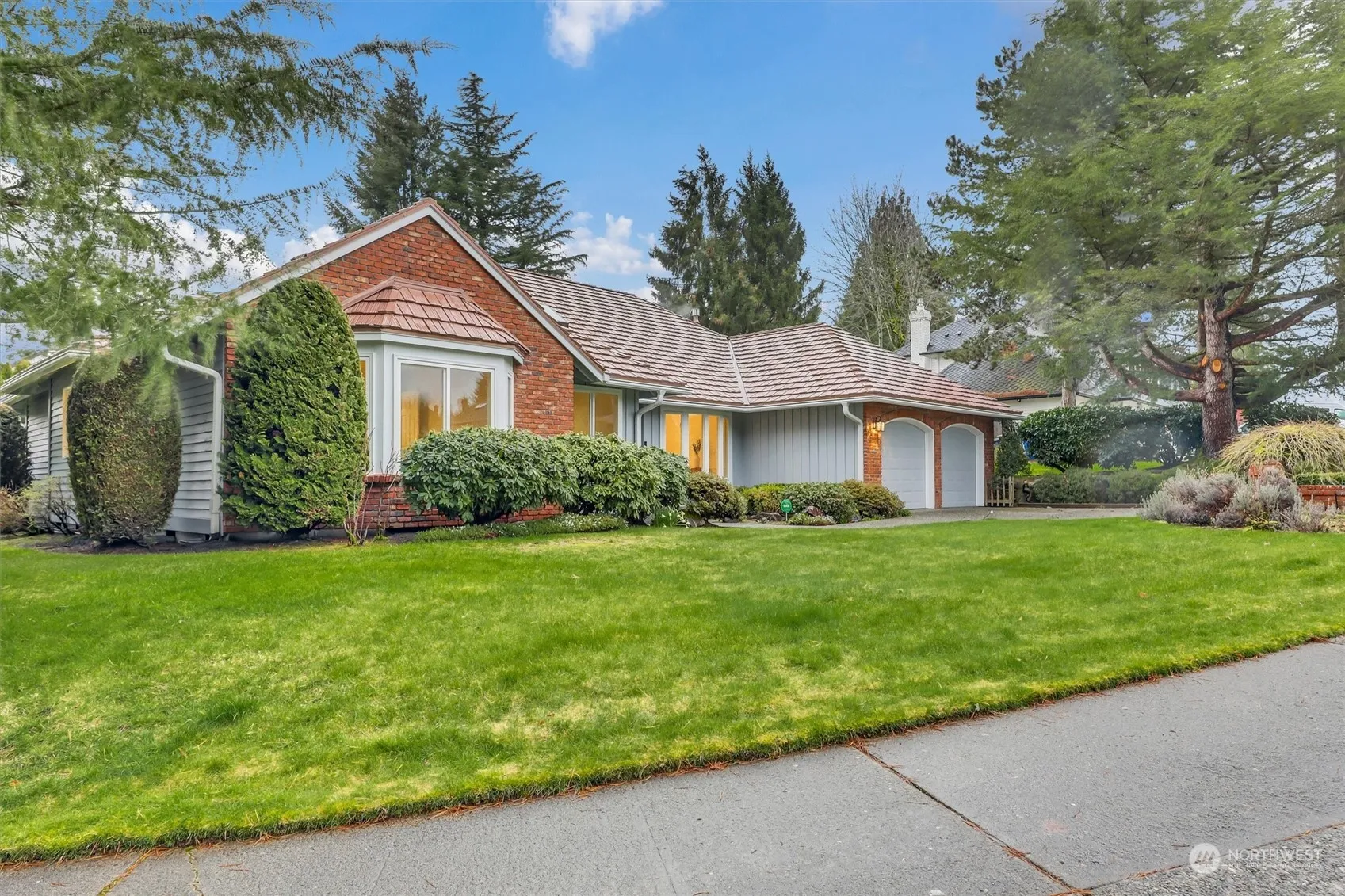 RARE one story rambler in sought after Vuemont, one level living lifestyle, 3 large bdrms + Den. Large corner lot, mature gardens with beautiful perennials that start popping in spring through late fall. Large level yard and patio are perfect for entertaining. Freshly painted inside and outside, new lighting & hardware, new water heater, new refrigerator, newer washer & dryer. Roof has been replaced with lifetime steel roof. Excellent Issaquah Schools, walk to acclaimed Cougar Ridge Elementary, minutes to downtown Bellevue, I-90 and 405. A quiet retreat will be yours in the tranquil private setting of the house and garden backyard and patio. (ATTENTION; THE OFFER REVIEW DATE HAS CHANGED TO 3/10/24)