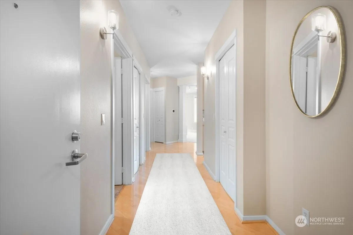 Welcome to The Portsmith in downtown Kirkland, just two blocks to everything you want and love… waterfront, dining, shopping, amenities, and services. Corner unit, 3rd floor, 2 bed & 1.75 baths. Lives like a home at 1,519 sq feet. Two balconies, open floor plan, gas fireplace, delightful kitchen w/ breakfast bar and casual dining area w/ French doors to an add’l dining area & living room. Built in cabinets for amazing storage and display. Stainless steel appliances, hardwood floors, unit is freshly painted. Washer/dryer included. A/C. Two secure parking spaces, plus private storage. Pet and renter friendly, with NO rental cap! Exercise room, clubhouse lounge, kitchen area, common area courtyard. Great investment opportunity! Don’t delay!