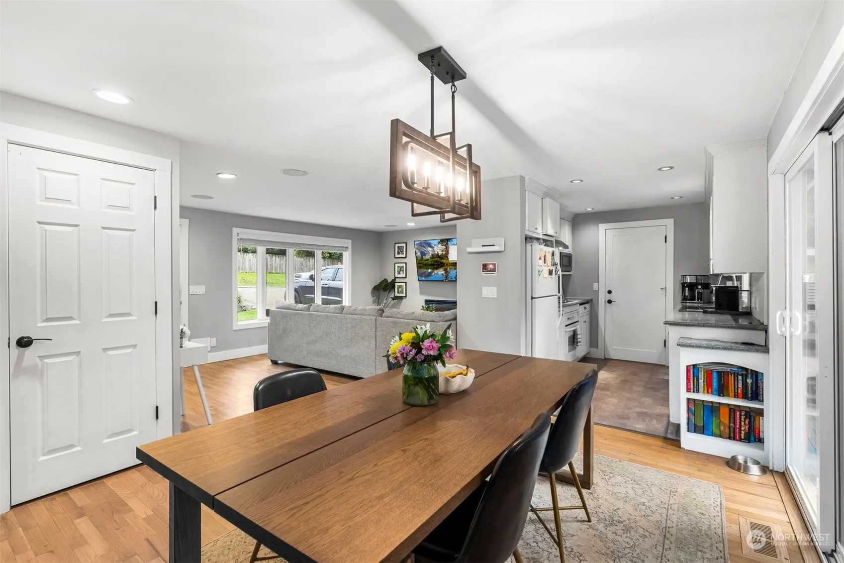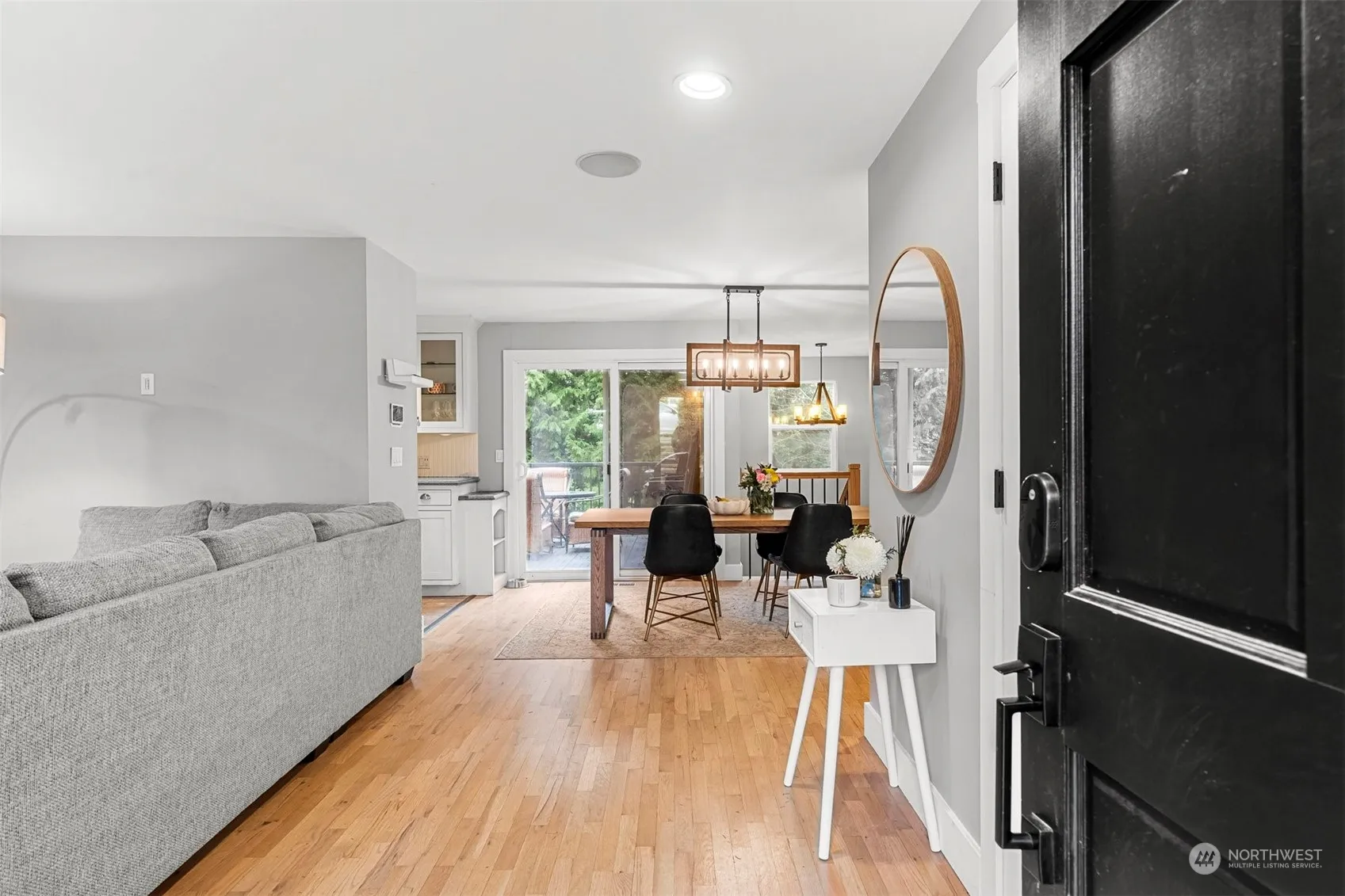 Hidden gem in Holiday Hill! This unique home offers flexibility and convenience. With 3 beds, 2.75 baths, 2 kitchens, 2 laundry areas, and a 1-car garage wired for an electric car, this property is perfect for modern living. The main floor features a living area, kitchen, 2 beds and 2 baths. A quaint dining area that opens up to a serene deck. The lower level features a cozy family room, a second kitchen, laundry area, bedroom, ¾ bath and storage space. Outside, you’ll find a fully turfed backyard perfect for enjoying the beautiful PNW summers. Located just minutes away from shopping, dining, entertainment, and major highways, this home offers the perfect blend of convenience and comfort in the heart of Bellevue.