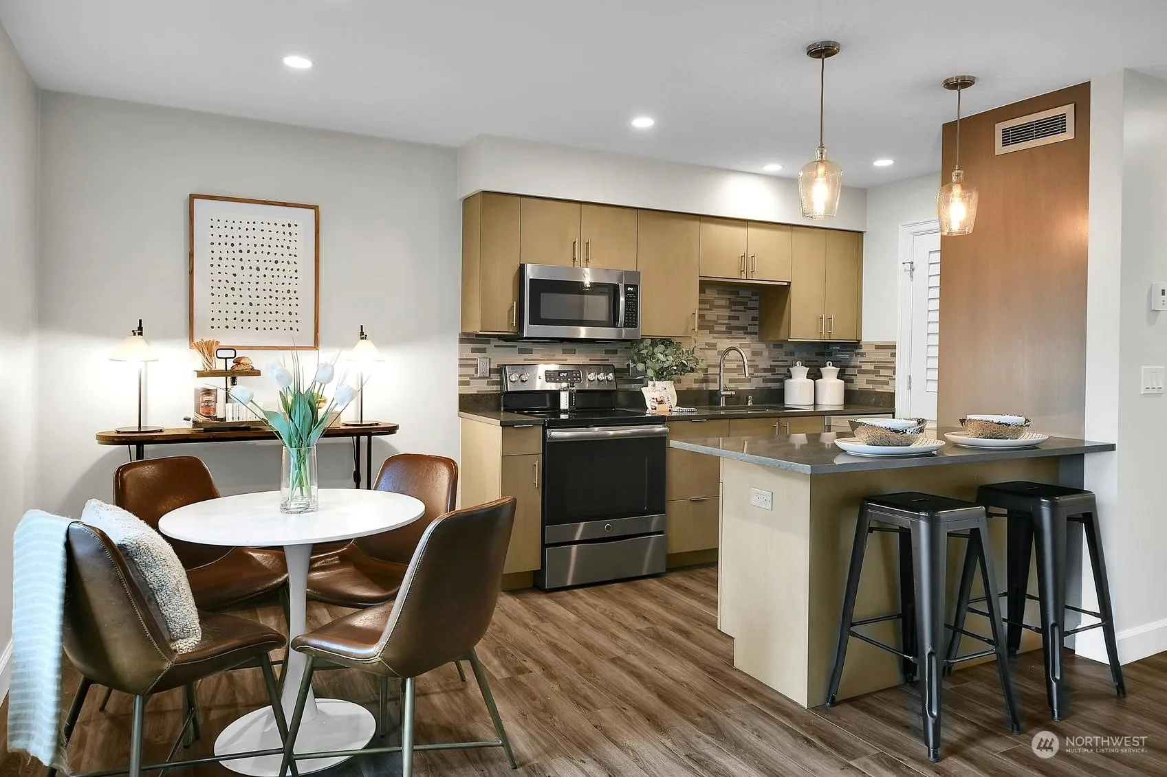 Exquisitely remodeled with lake & mountain winter views & glorious sunsets, experience the perfect blend of nature, convenience and luxury with this Juanita Village condo. Custom kitchen where quartz & tile abound featuring gorgeous cabinetry & hardware, SS appliances & breakfast bar. Stunning, stone fireplace w/custom oak mantel for those cozy evenings watching the sunset over Lake Washington. Incredible storage graces the handsome 3/4 bath. High-end millwork, easy care vinyl plank floors, new paneled doors & hardware surround you with comfort & warmth. With it’s strategic location, this home offers easy access to all things in Juanita: local shops, restaurants and 2 unsurpassed parks: Juanita Bay Park and Juanita Beach Park. Welcome Home!
