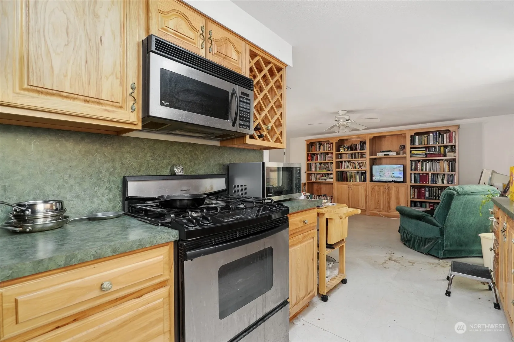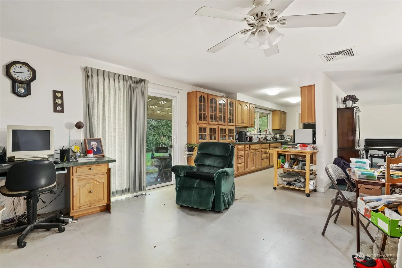 Opportunity knocks! Set on a level, 10,953 sq ft lot w/ 82 ft of street frontage & 138 ft deep to the west, this Kirkland address offers possibilities for builders & end users alike. At 1610 sq ft, this one level home has 3 bedrooms, 2 full baths, plus a 2 car garage. The fully fenced rear yard features a large, covered patio, dog run, & a storage shed. Interior features include vinyl windows, hardwood floors in LR, hallway & each bedroom, plus built-in cabinets in family room plus some updates in the kitchen & bathrooms. Terrific location near schools, parks, shopping, & employment. Please respect viewing times as elderly seller gets nervous with lots of activity.