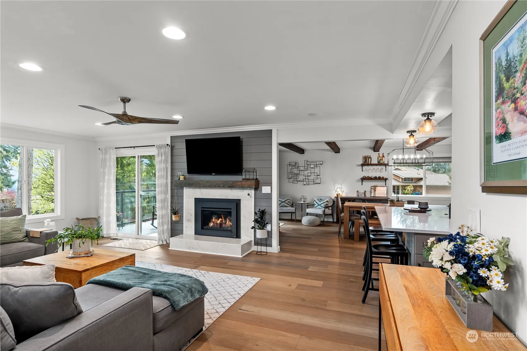 Set on a 1/4 acre lot overlooking Lake WA surrounded by fresh landscaping & towering pines, you can have it all in this Finn Hill gem: a peaceful setting, a stylishly updated & spacious home, top-rated schools & downtown Juanita/Kirkland within mins. Bright, open main level basks in great sunlight showcasing new flooring, newer paint inside & out, & a fully remodeled kitchen w/ quartz counters, all-new cabinets, stainless appliances & a large island. Expanded primary suite boasts a walk-in closet, private deck & remodeled ensuite bath. Relax on the covered patio around the fireplace & pizza oven or on the large composite deck taking in views of sunsets over Lake WA. Everything within mins: St. Edward Park, Totem Lake shopping & freeways.