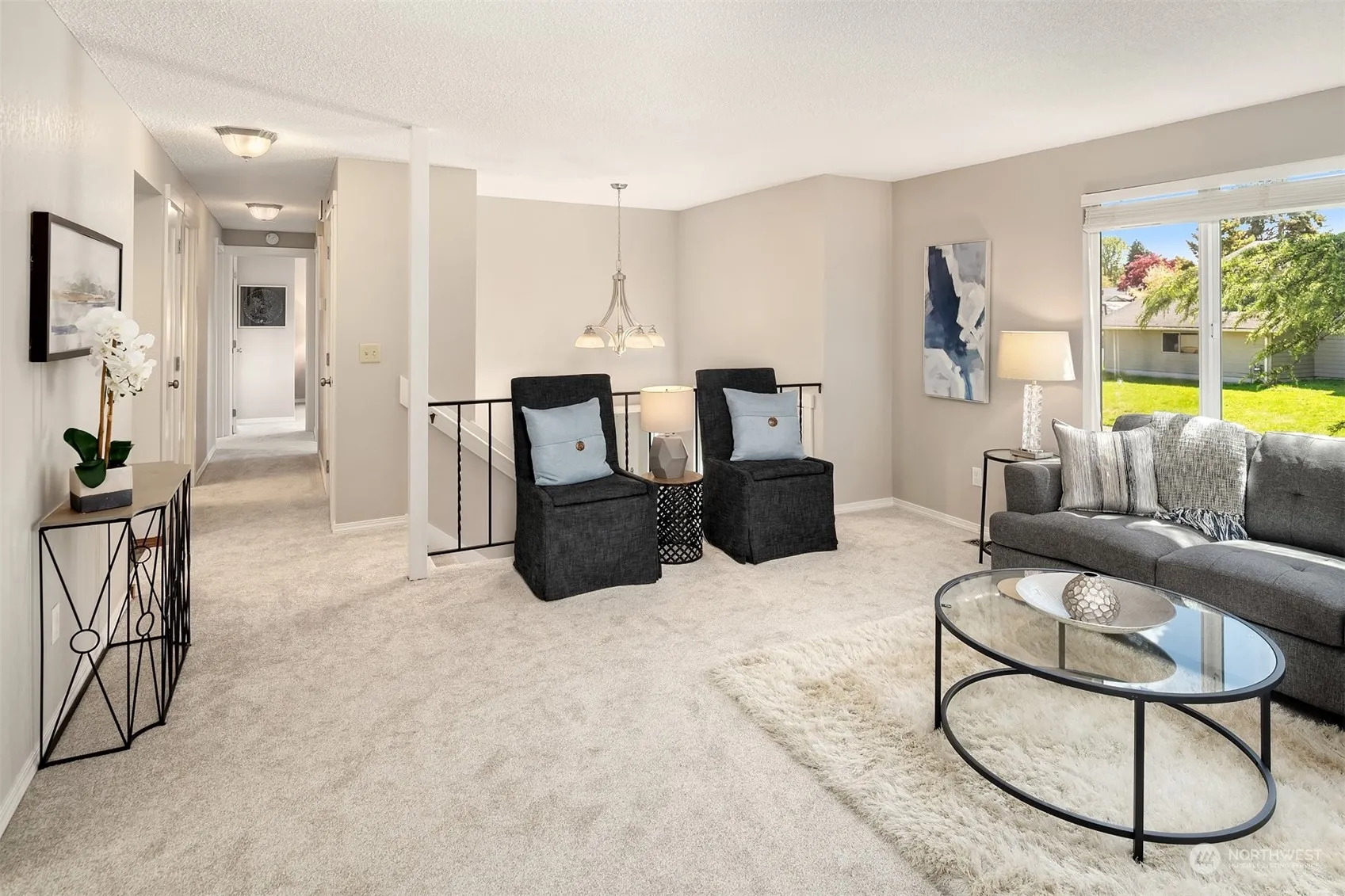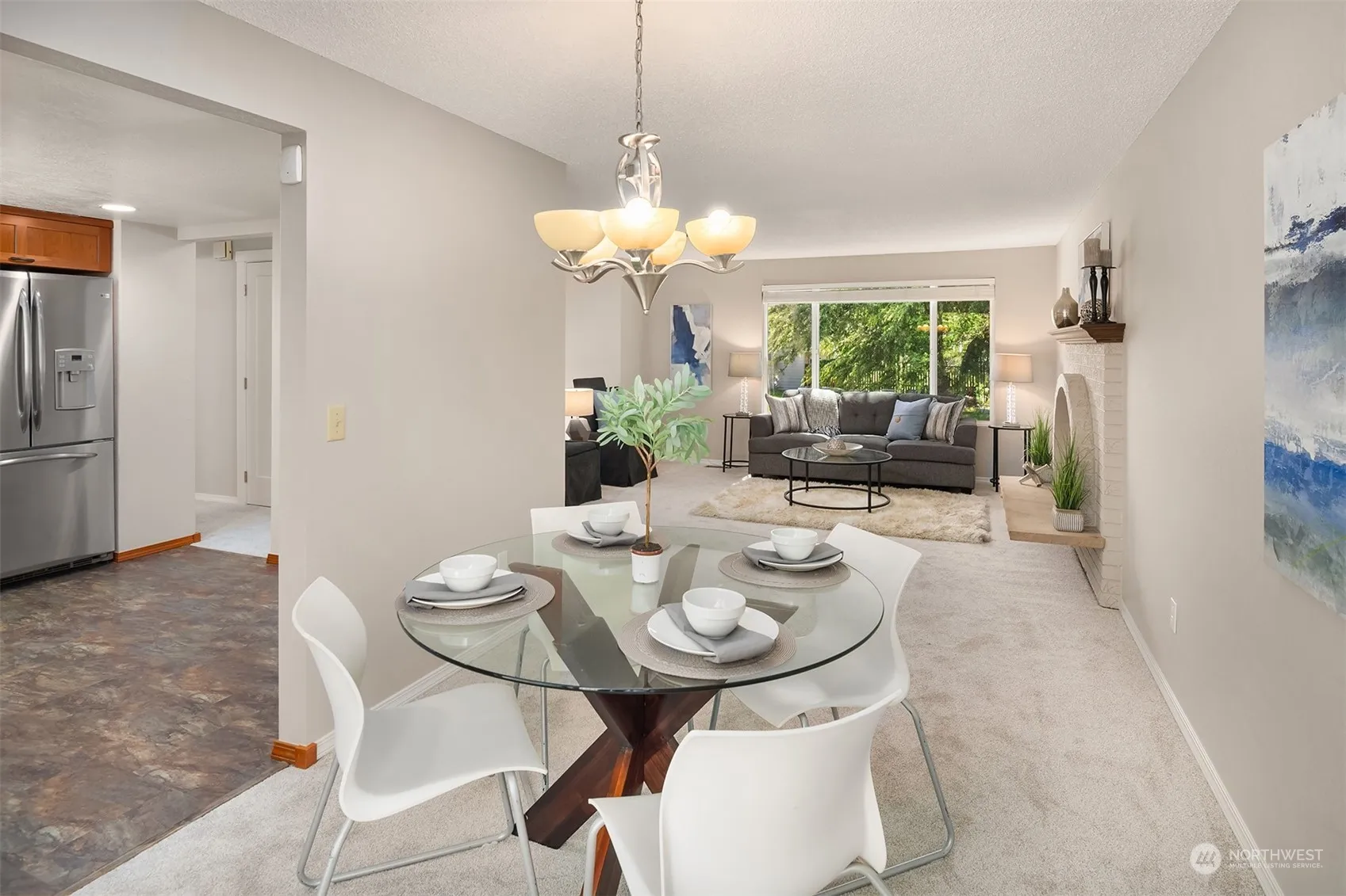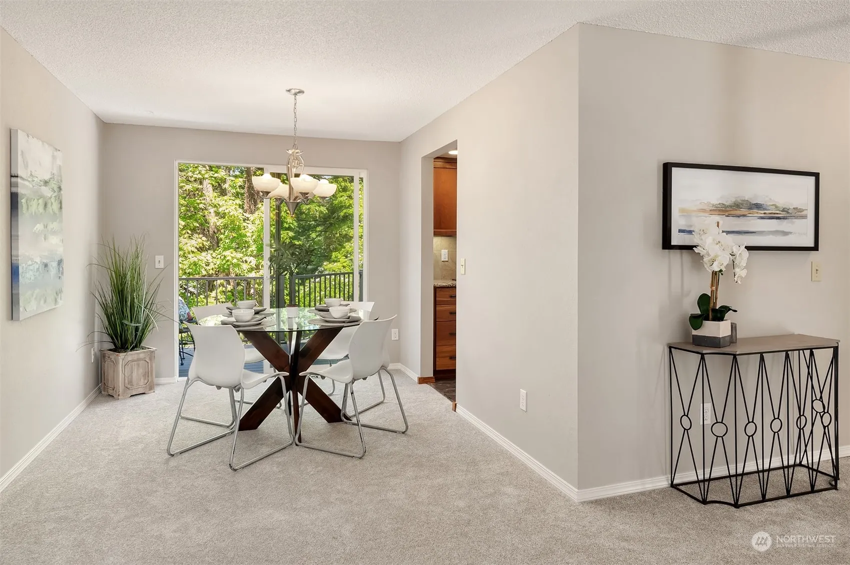 Light & bright, move-in ready home in the desirable Totem Lake area. Numerous upgrades with brand new interior paint, new craftsman style doors & trim, and new carpet throughout, for a fresh neutral palette. Large updated kitchen with cherry cabinets, granite countertops & stainless appliances. Enjoy the scenic privacy from the entertaining size Trex deck overlooking natural greenspace (Owned by the City of Kirkland). Newer windows, new water heater and furnace. This 1470 SF home lives large with 3 BR, 2.25 BA and lower level bonus room with fireplace. Conveniently located near shopping, restaurants, parks & sports fields and easy access to I-405. Pre-Inspected.