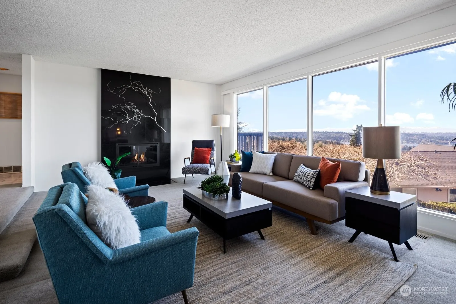 Beautiful curb appeal welcomes you to this spacious daylight rambler on a private corner lot with gorgeous views of Seattle, Bellevue, Lake Washington & Olympic Mountains! Large traditional floor plan with formal living and dining rooms, family room with fireplace, 3 bedrooms and 1.75 baths on the main floor, plus ½ bath & main floor laundry. Daylight lower level with additional bedroom, bath, rec-room with fireplace plus bonus room, shop and storage. Come enjoy the captivating sunsets and make this well-maintained home your own.