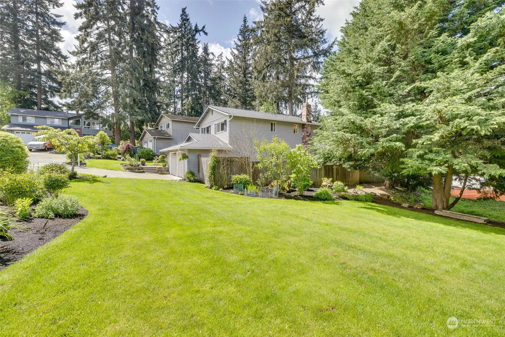 Welcome to your own retreat nestled in this sought-after Kirkland neighborhood! Lots of natural light in this lovingly maintained east facing home which offers an updated kitchen, live edge counter overlooking the backyard & joins the living & dining rooms for easy entertaining and living. Enjoy the brand new deck & expansive, private yard while the gardens bloom from early spring to late fall. This home exudes quality elegance with sleek hardwoods & large windows allowing natural light to flood the space. Large primary w/ ensuite bath along with 2 more roomy bedrooms and a full bath are upstairs, along with a lower-level family room with wood fireplace, access to the backyard, an office/flex space, bedroom & 3/4 bath. New roof!