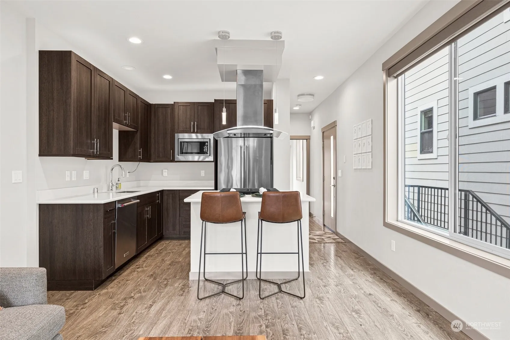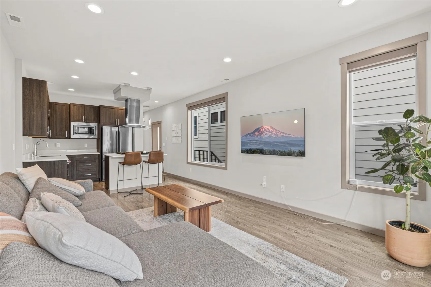 Nestled in Kirkland, this stunning townhome boasts an open, light-filled floor plan with a contemporary living room and exquisite, high-end architectural details. Plentiful natural light fills the expansive great room that seamlessly connects to a large, island kitchen. Ample primary suite features a ¾ bath & walk-in closet. Additional 3rd bedroom, bonus room, or guest suite included. A fully fenced backyard provides a private retreat, while the convenient location offers easy access to schools, shops, parks, Lake Washington, Juanita Beach, and major highways. Low, self-managed HOA fees complete this desirable package.