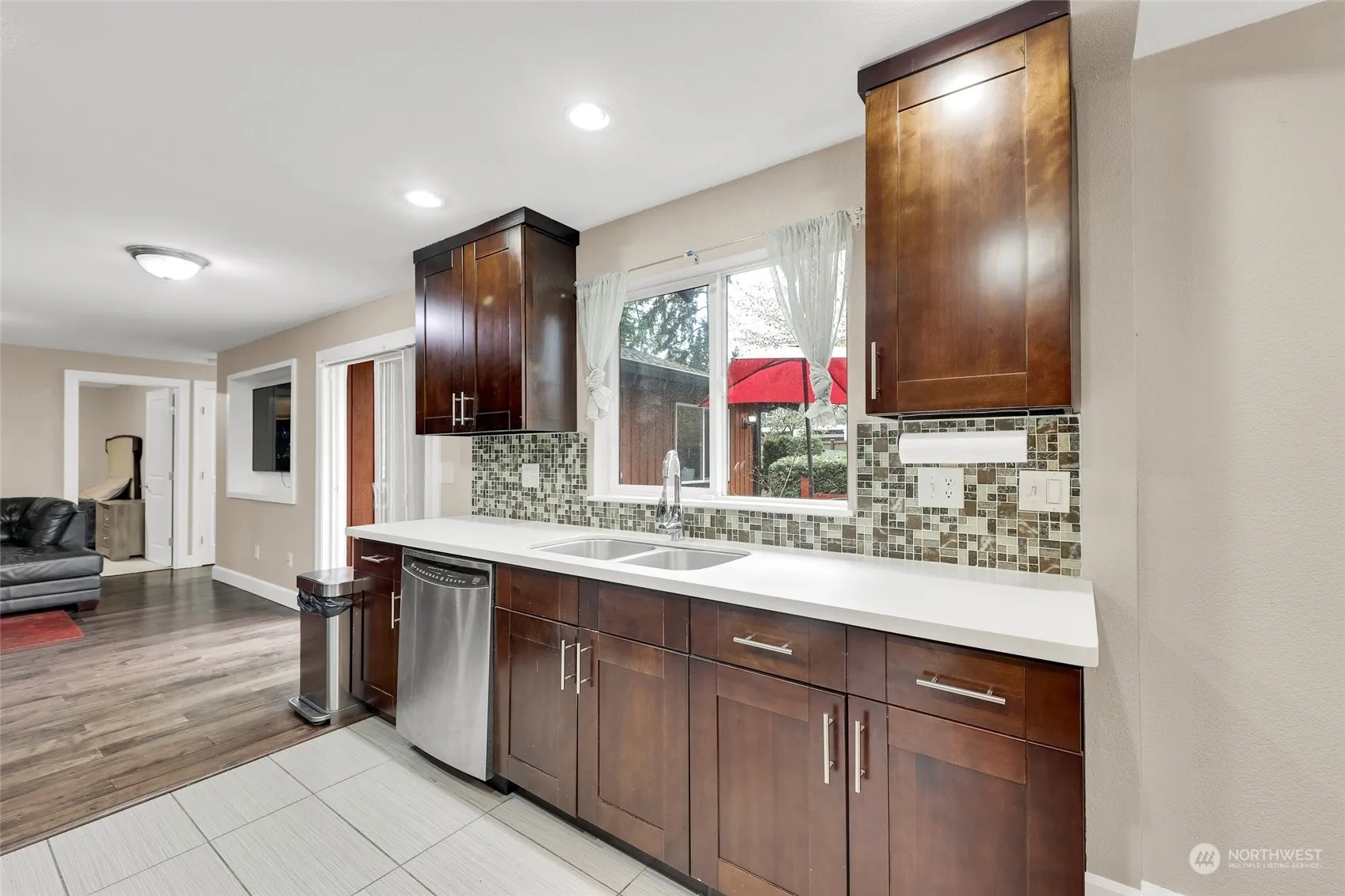 Welcome to the Copper Wood community of Kirkland. This Beautiful property sits on a Large private lot. Entry opens into spacious family room with vaulted ceiling, hardwood flooring throughout plus large fireplace to compliment. Bright windows adds natural lighting and character. Kitchen boasts quartz counter tops, new cabinets, custom glass tile backsplash and stainless steel appliances. Nice size primary bedroom with attached bathroom plus walk in closet. Additional two bedrooms with new paint and flooring plus full size bathroom. Enjoy the beautiful landscape and roomy private back yard. Extra large 2 car garage with plenty of space for workshop and all your tools. Within minutes from I-405 freeway, restaurants and shopping.