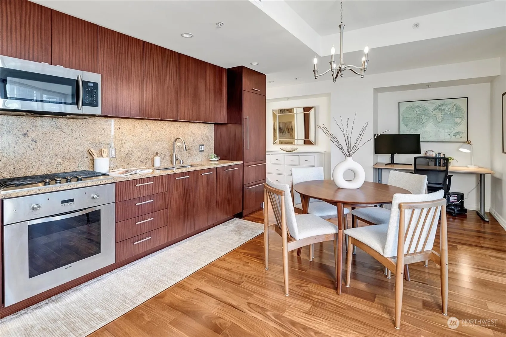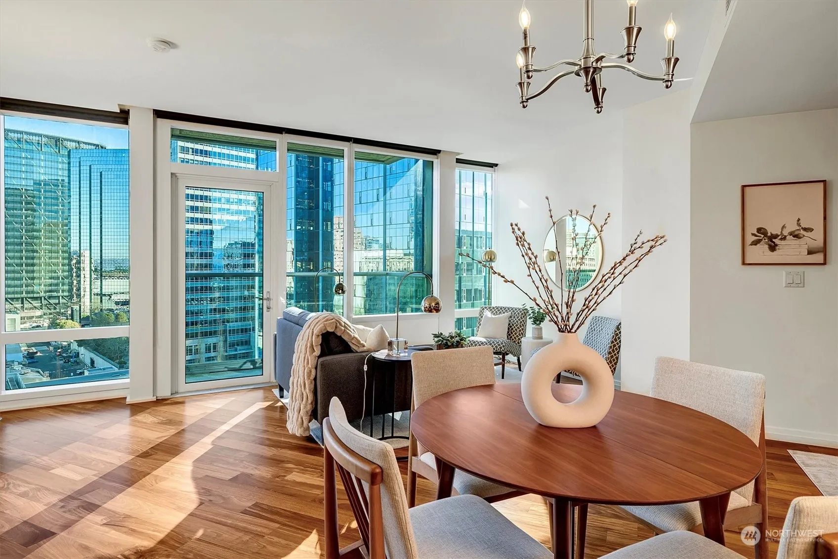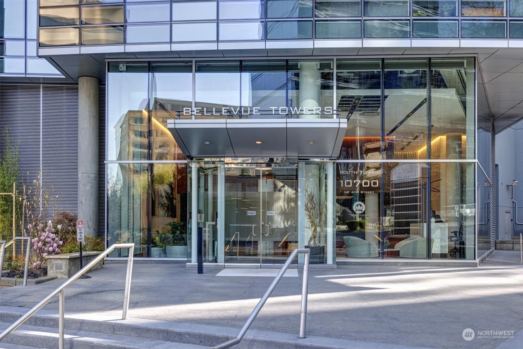 Sleek urban living on the 17rd floor of Bellevue Towers! Generous studio with private balcony and a wall of windows and city views. Chef’s kitchen w/SubZero fridge and Viking gas cooktop. Flexibility to convert to a one bedroom if desired. Assigned parking space plus rare storage unit. Walk to shopping, restaurants, Amazon, waterfront park and all the best of Bellevue. Newly-remodeled amenities include spa, 2 gyms, concierge, theater, 1/2 acre garden & lobby! LEED Gold rating for sustainability.