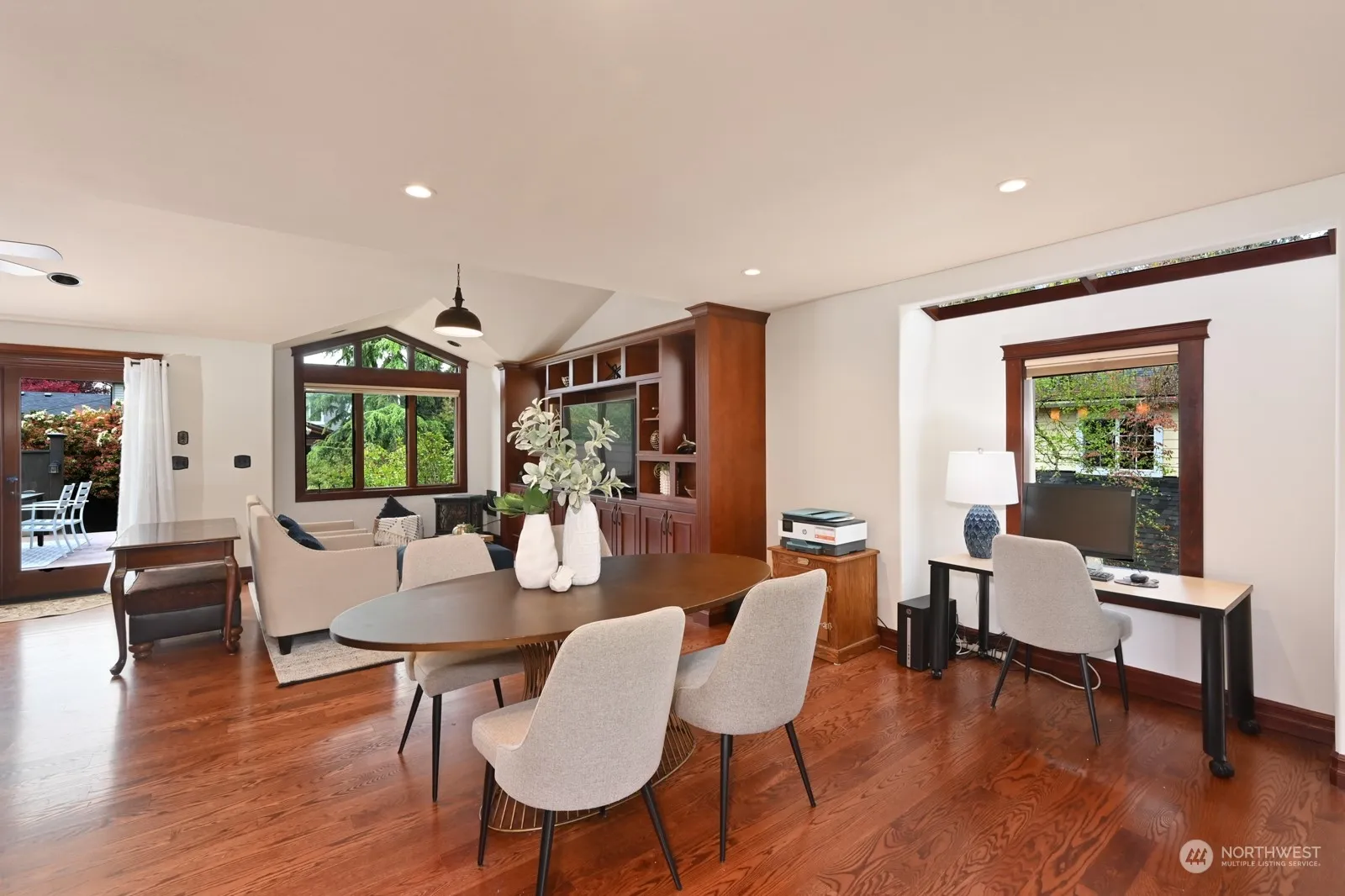 Fabulous home nestled on a private lane in desirable West of Market neighborhood! Chef’s kitchen openly flows to great room, dining and living room & access to HUGE entertainment sized deck and beautiful level private yard. Primary Suite with walk-in closet, 5-piece bath and French doors to deck plus 2 add’l large bedrooms on main level. Lower level features rec room, 4th bedroom and three-quarter bath. Garage lovers dream – oversized parking for 2, TONS of storage & incredible flex space (home office, workshop, ADU space)…. 1,400 sq ft garage can easily accommodate whatever your vision may be! Enjoy stroll-ability to multiple nearby parks & trails plus easy access to Kirkland & Juantia’s hotspots, shops & eateries!