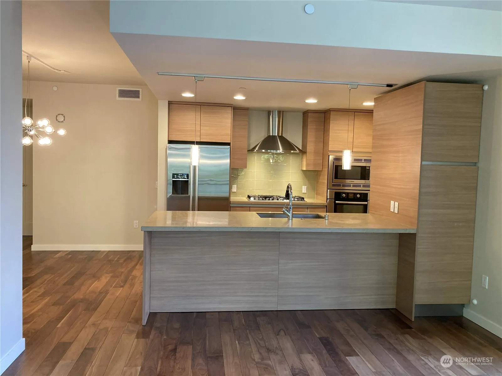 Enjoy living in the heart of downtown Old-Bellevue in this beautifully appointed condominium. Walk to restaurants, cafes, and Bellevue’s beautiful Downtown Park. Built in 2009, this boutique 10-story building offers just 57 units. Unit 206 is a corner unit that features a large patio (over 400 square feet) that extends the living space for much of the year and has a built-in BBQ. The well designed interior has quality finishes including, Bosch stainless appliances, limestone countertops, sleek German designed SieMatic cabinetry, hardwood floors, laundry closet and air conditioning. Secure parking stall in garage and a storage closet on the main floor. Simplify your life and experience condo living in one of Bellevue’s best locations.