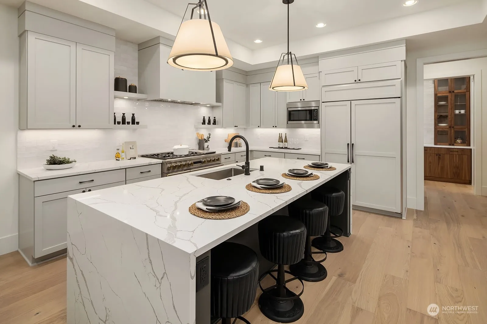 MN Custom Homes introduces a transitional design in the convenient Totem Lake neighborhood. Entertainment spaces include vaulted great room, chef’s kitchen, outdoor covered living space with BBQ hook up & upper-floor bonus room. Private, main floor guest en-suite. Upper floor primary retreat with 5-piece bath and heated floors. Work from home office. Corner lot, with private south facing backyard. Smart & green home features throughout, including solar panels. Just blocks to high end shopping and restaurants at The Village at Totem Lake. Convenient access to downtown Kirkland amenities, beaches, parks, schools & all major Tech campuses. Lake Washington Schools.