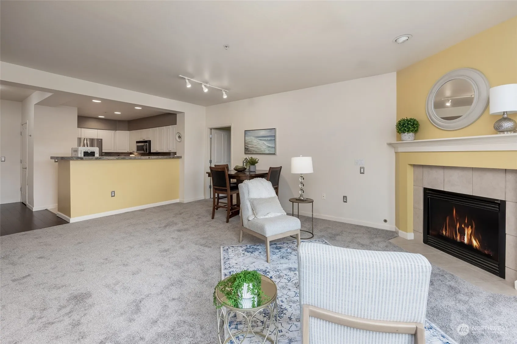 Welcome to Le Chateau community in the coveted Woodridge neighborhood in the heart of Bellevue! Enjoy peace, privacy & tranquility on the TOP floor, backing up to 5+ ACRES of Protected Native Growth area. This updated condo exudes modern charm & easy living featuring NEW carpet, newer luxury vinyl plank flooring, gas fireplace, high ceilings, tons of storage including a walk-in closet, 2 dedicated parking spaces (1 in garage & 1 uncovered) & in-unit laundry. Relax by the pool all Summer long or enjoy the luxurious clubhouse & amenities w/ a kitchen, meeting space, & gym. The best of the Eastside is at your doorstep: convenient access to major employers, dining, shopping, parks, trails, Hwy 405, I-90 & transit are all within minutes.
