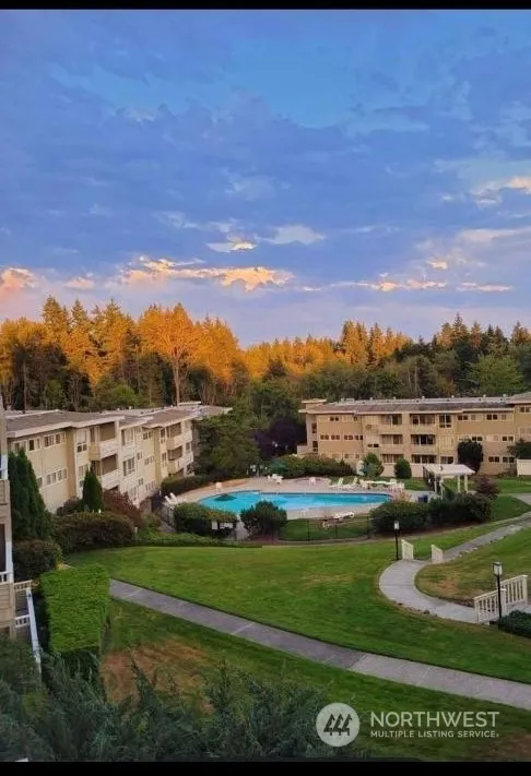 Fabulous 1 bdr/1 bth Top Floor unit-Great condition-Floor to Ceiling Windows-Lovely Territorial View-Centrally located-Covered Private Deck-Bellevue Schools-Secured Building-Plenty of Guest Parking-Rental cap is met-Complex has been recently renovated with new roof/new exterior sidings/elevators/sewer & water lines have been upgraded/New Exterior paint//new decks. Seller has paid off the special assessment. Hidden Creek has an outdoor pool, cabana, & workout facility. Well located close to services, public Transport including the new light rail easy access to I-90/405/520, downtown Bellevue & Seattle, the Spring District-Pet Friendly