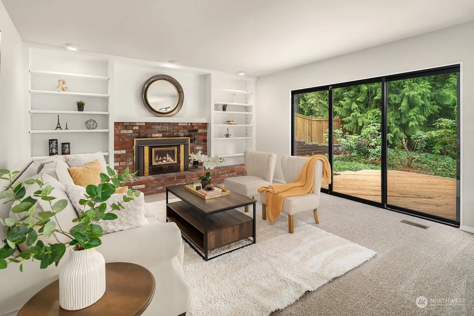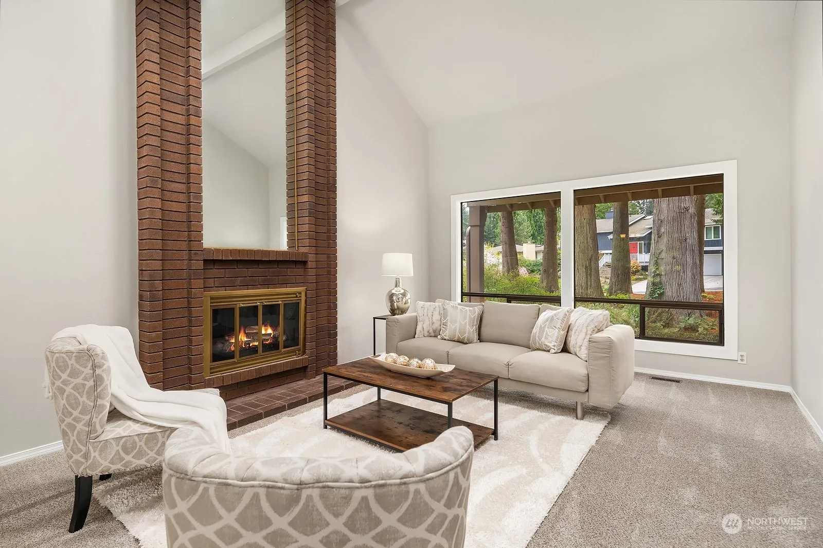 Seamlessly connected indoor living with the beauty of the outdoors. New interior paint, carpet, luxury vinyl planking, and new light fixtures. Cozy up in the family room featuring a fireplace, ideal for chilly evenings, and easily access the expansive deck. Retreat to the primary suite boasting multiple closets, including a walk-in, along with a jetted soaking tub, quartz counter tops, and separate shower illuminated by a skylight, creating a spa-like experience. Garage with plenty of storage options. Outside, the park-like setting and thoughtfully landscaped yard offer a tranquil oasis, backing to ferns and forests for ultimate privacy. Partial views of Lake Sammamish and the Cascade Mountains, completing this picturesque retreat.
