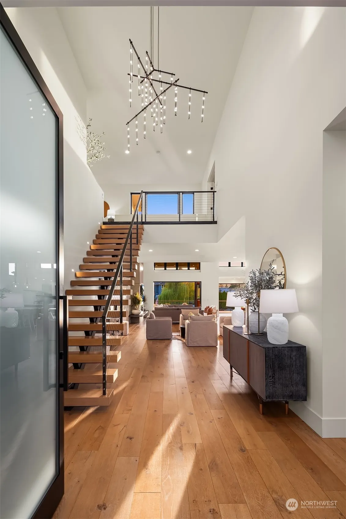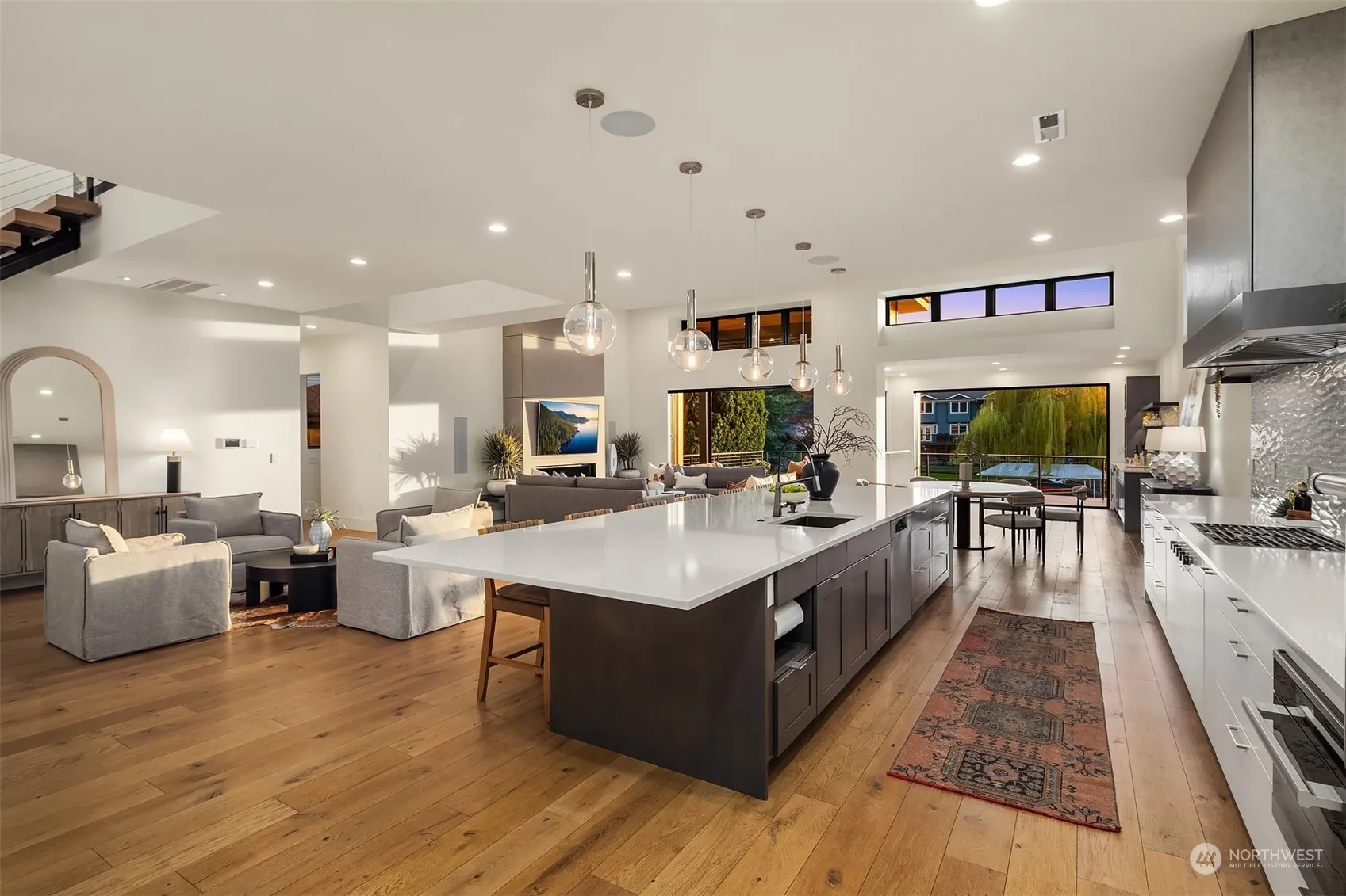 Stunning LUXE waterfront by Urban Restoration. AWARD-WINNING Kitchen & Bath Design. Wide canal site w/ 75 ft protected moorage, southern & western views! 9 Ft PIVOT front door opens to incredible FLOATING staircase & 21 ft high entry, amazing chef’s kitchen with HUGE center island, prep kitchen & walk-in pantry. Sliding glass pocket doors extend to covered & heated deck, gorgeous waterfront & dreamy sunset views. Calming primary suite w/giant walk-in closet & spa-like bathroom. 4560 sq ft home with BONUS 2130 ft in lower level “Lake Room” w/kitchenette, 3/4 bath & 2nd laundry or use as 2nd garage. 4 Beds, Office/Den. Elevator. Lake Washington living in coveted Newport Shores community-clubhouse/pool/volleyball/tennis/pickle ball!