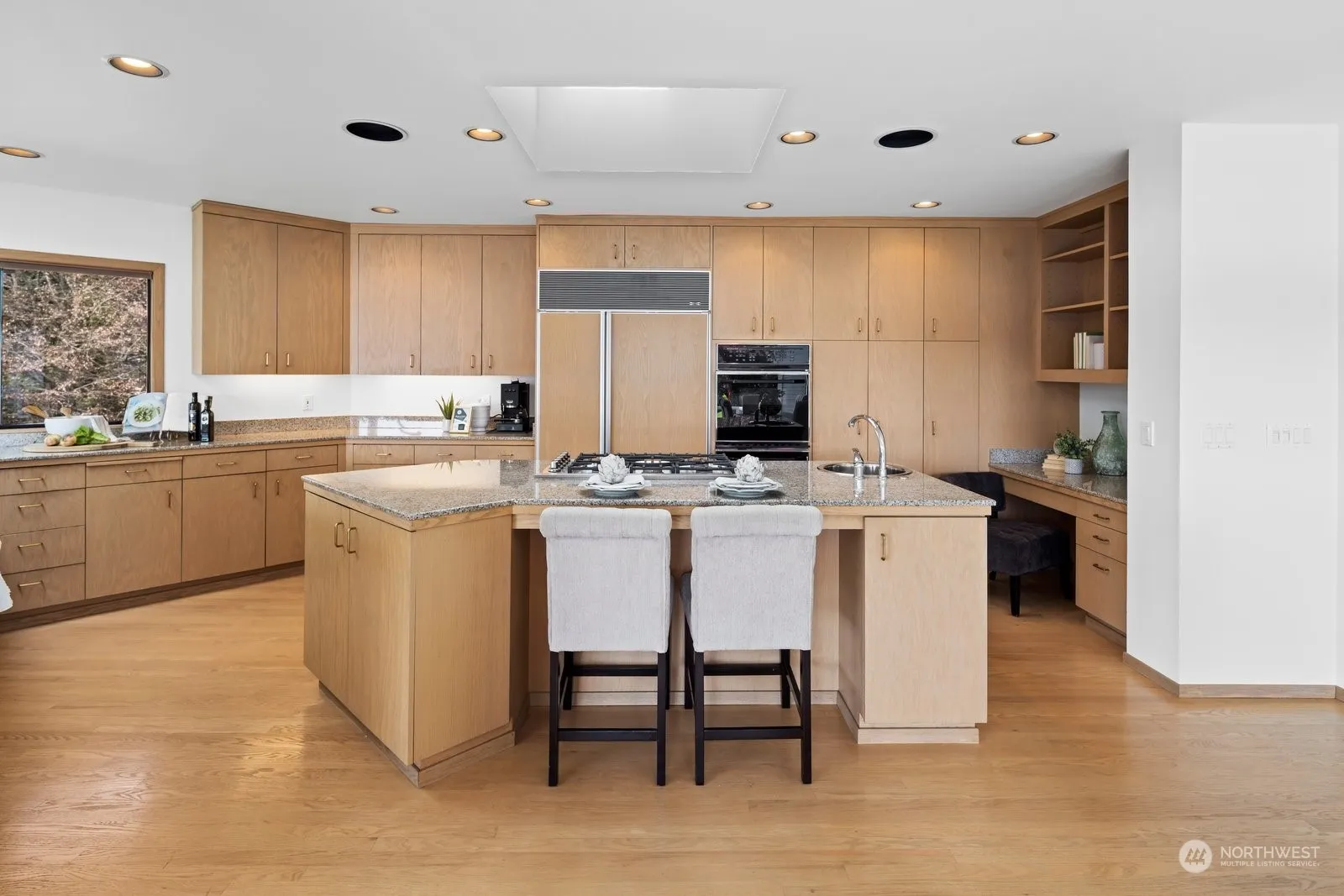 Enjoy refined lakefront living in this Northwest contemporary home built by Design Guild. 43’ of prime, southwest facing no-bank waterfront with sandy beach, newer 71’ dock w/6,000 lb. boat lift. Expansive windows maximize the light and captivating views. Designed for gathering, the main floor has formal living and dining rooms, open-concept kitchen, family room + den/office. Upper level w/primary suite w/lake views & 5-piece bath. Additional upper level bedroom with ½ bath. Daylight lower level w/rec-room, 3 bedrooms, 1.75 baths, media room & 2nd kitchen. 22,276 sf lot w/expansive decks, patio, sport court & lush sprawling lawn. 3-car garage + 4th gar & parking for 10-12 cars. Just minutes to Bellevue, parks, shopping and restaurants.
