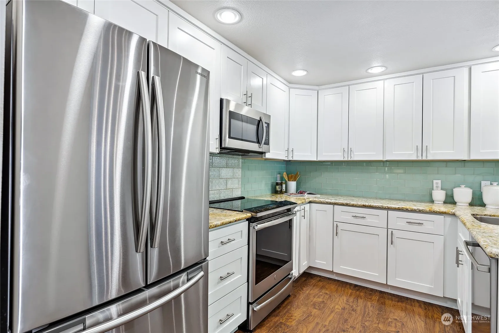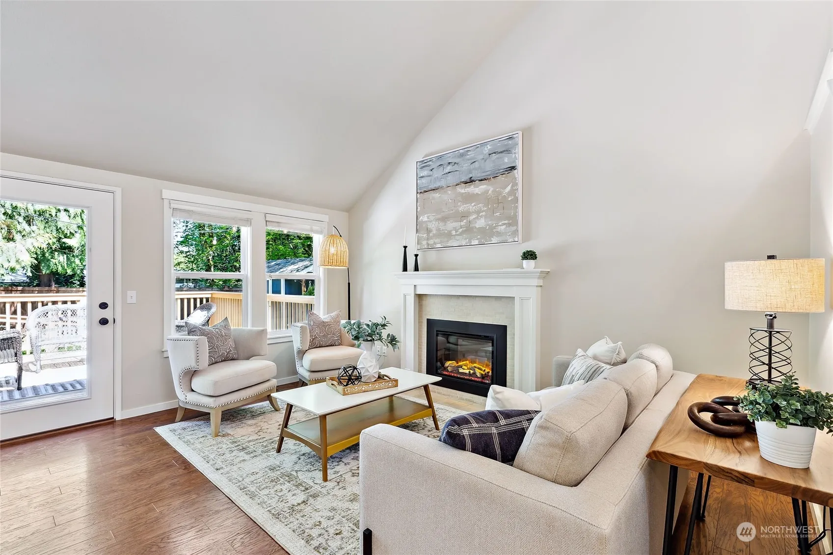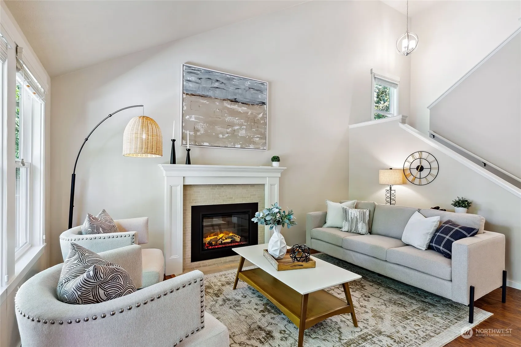 Kirkland Storybook townhome in the quaint neighborhood of Simonds Glen! The covered front porch welcomes you right as you enter to soaring light filled vaulted ceilings w/fresh paint. The remodeled kitchen w/SS appliances, white shaker cabinets & breakfast bar looks over the dining room to your private yard w/oversized newer deck. From the open living room w/electric fireplace, head upstairs to 2 generous bedrooms, hall bath & a stunning primary overlooking the back yard w/a fabulous updated 3/4 bath. New roof, furnace, water heater and all new attic insulation all done in 2024! Just minutes to I-405 and quick access North & South down 100th Ave NE make for an extraordinarily convenient location! Lake Washington Schools & Pre-Inspected!