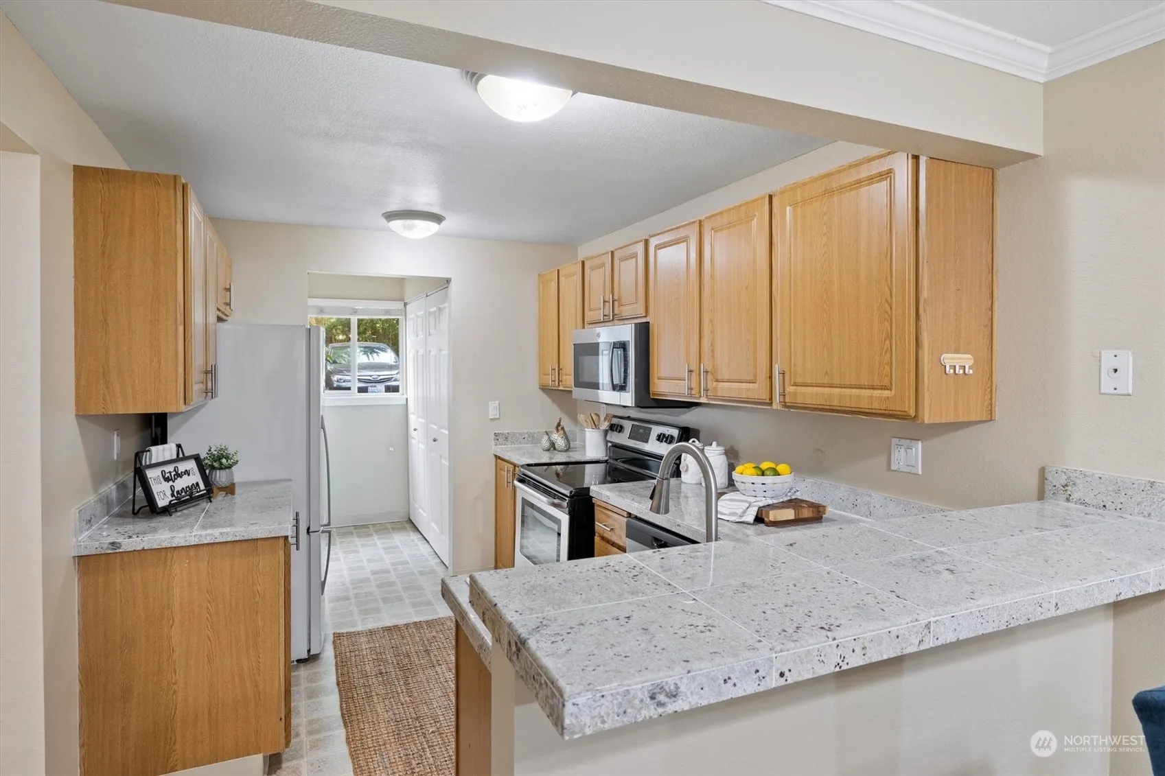 Nestled in Kirkland Springs, this modern retreat offers serene living near urban conveniences. In the midst of lush lawns, serene fountains and ponds, This meticulously maintained ground-floor unit showcases a breathtaking open kitchen seamlessly flowing into the dining area and expansive living room, along with 2 bedrooms and 2 bathrooms. Enjoy outdoor relaxation on the covered patio rain or shine. With 2 parking spaces, this home offers both comfort and convenience. Residents enjoy resort-like amenities including a pool, hot tub, basketball court, and more. Discover the perfect blend of nature and city living, just moments from Kirkland’s vibrant cafes, parks, shops and waterfront. NO RENTAL CAP. NO SPECIAL ASSESSMENTS. Well run HOA.