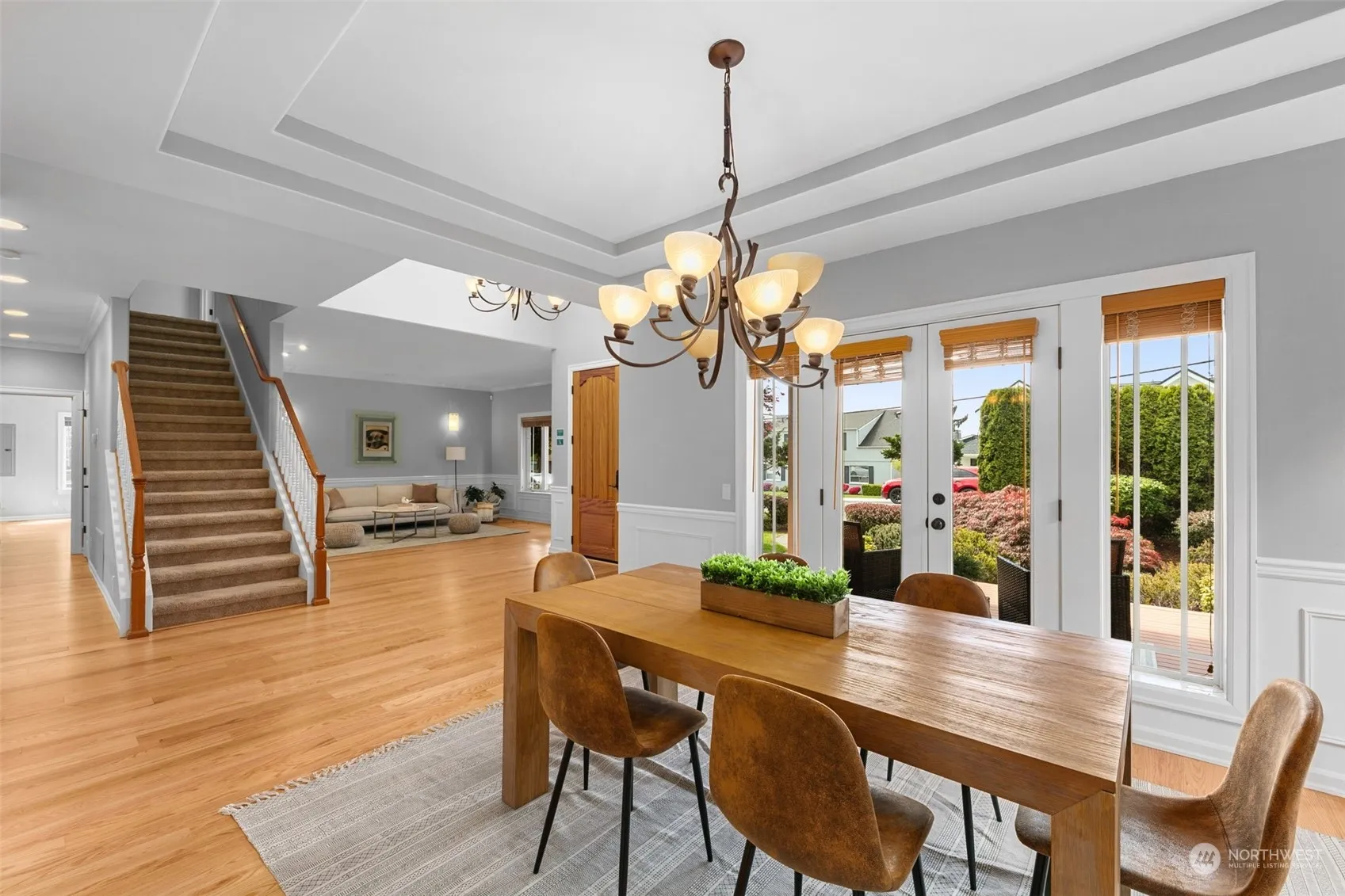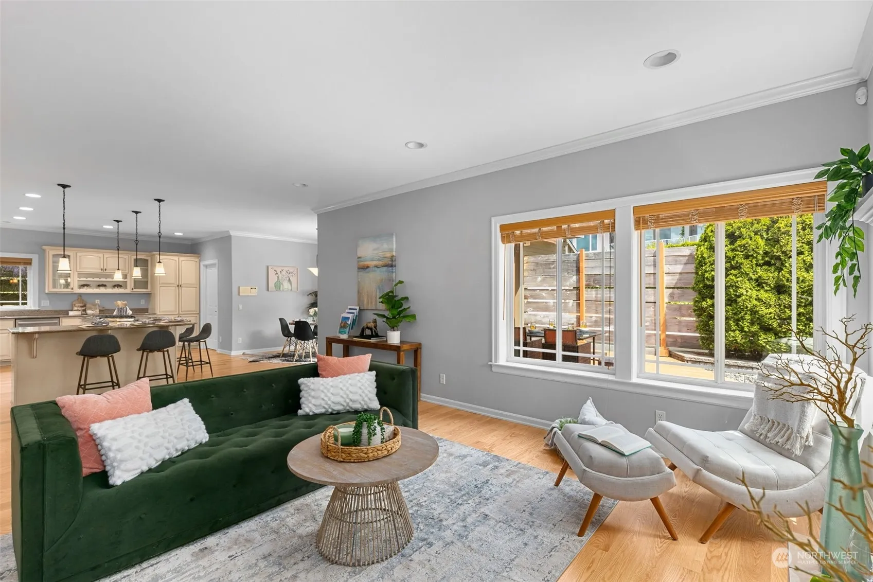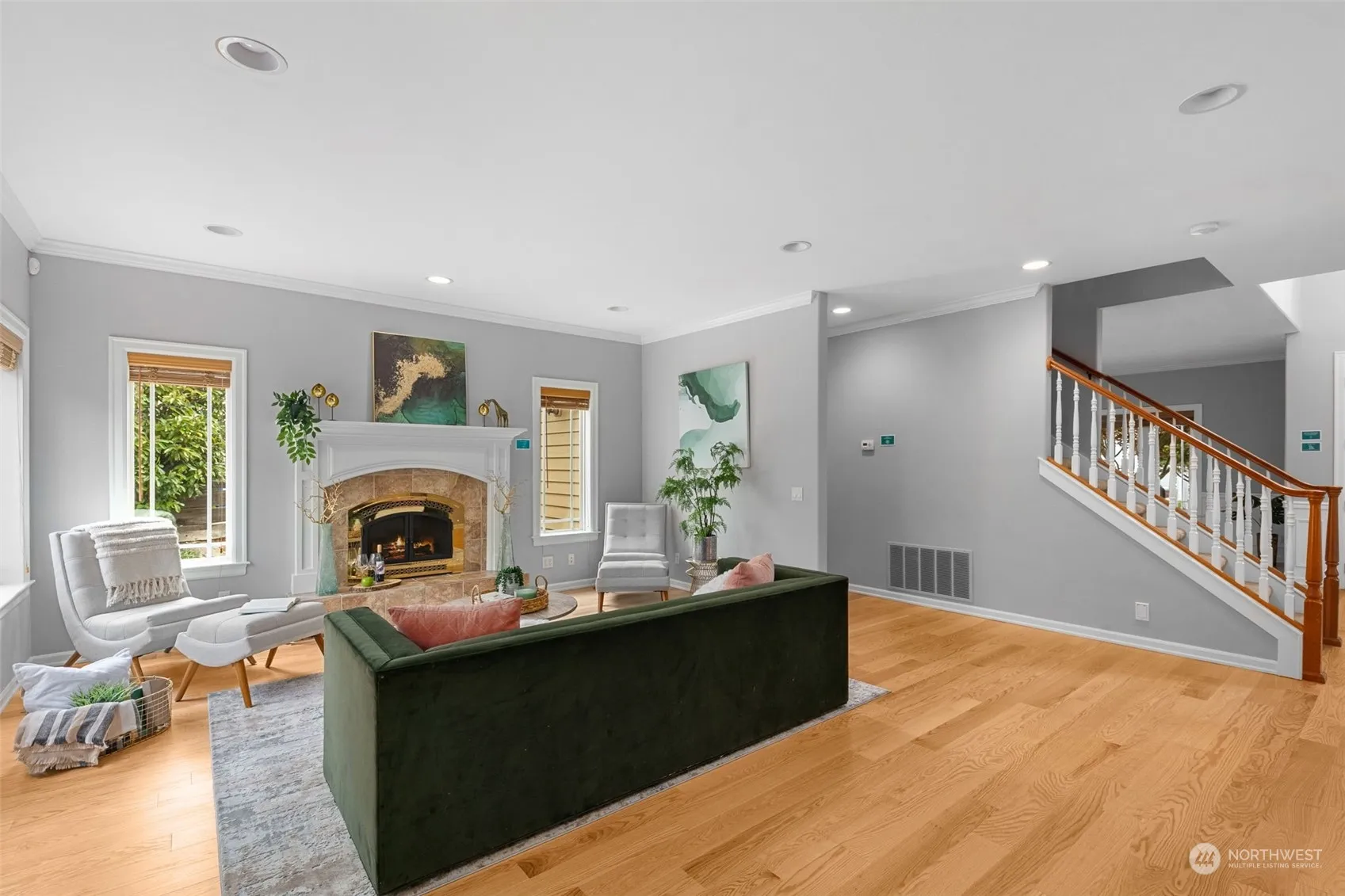 Unbeatable location within the treasured West of Market neighborhood. Only one block from lakeside Heritage Park + a few moment’s walk to Marina Park & downtown Kirkland’s great restaurants. This well-appointed home w/ partial lake views sits on a sprawling double lot w/ manicured landscaping. Two primary suites (main + upper floors) w/ their own decks, vaulted ceilings + private baths. Enjoy as 4 bedrooms + bonus room, office, or 5th bedroom. Custom touches throughout such as millwork, wood-wrapped windows, new engineered hardwood floors, marble tile & more. Stay cool this summer with central A/C. Detached garage, fenced yard, large entertaining deck, irrigation system. Great access to area employers. Award-winning Lake Washington schools.