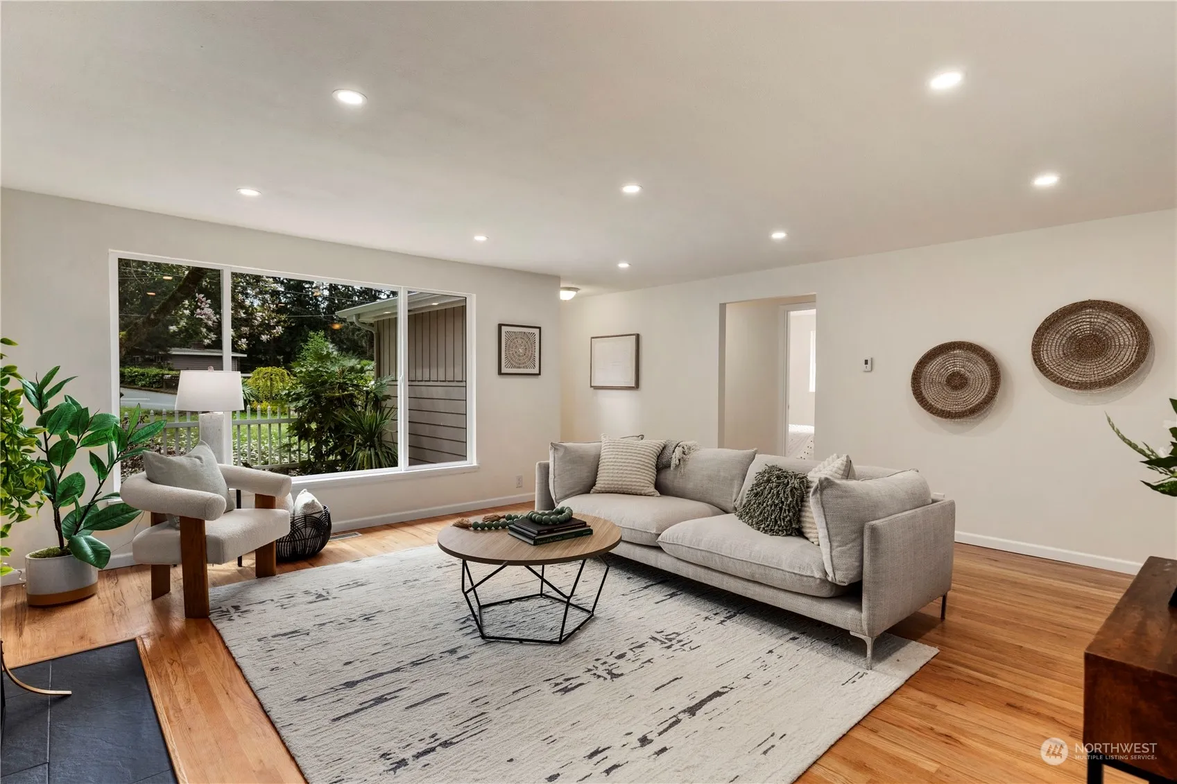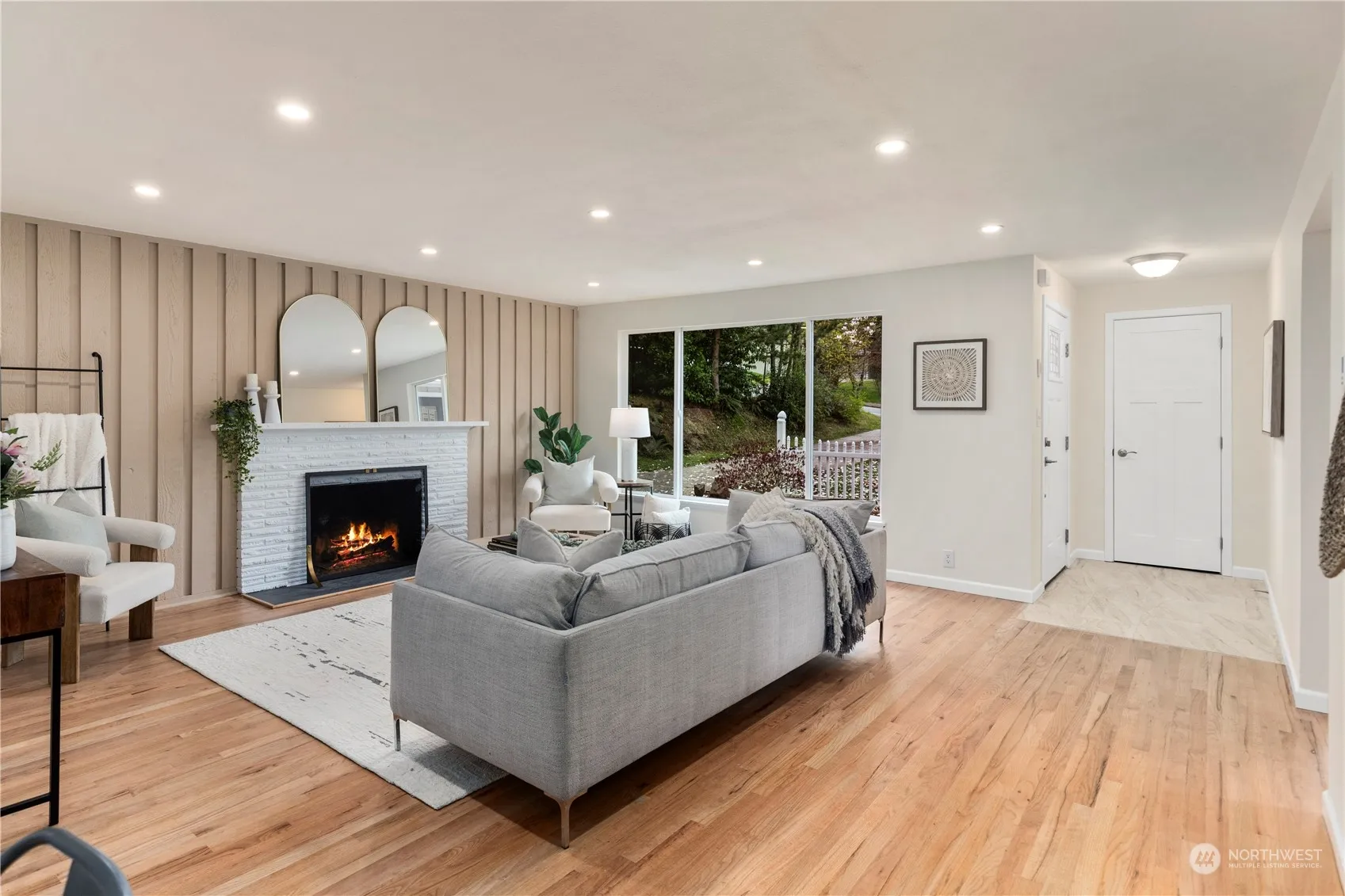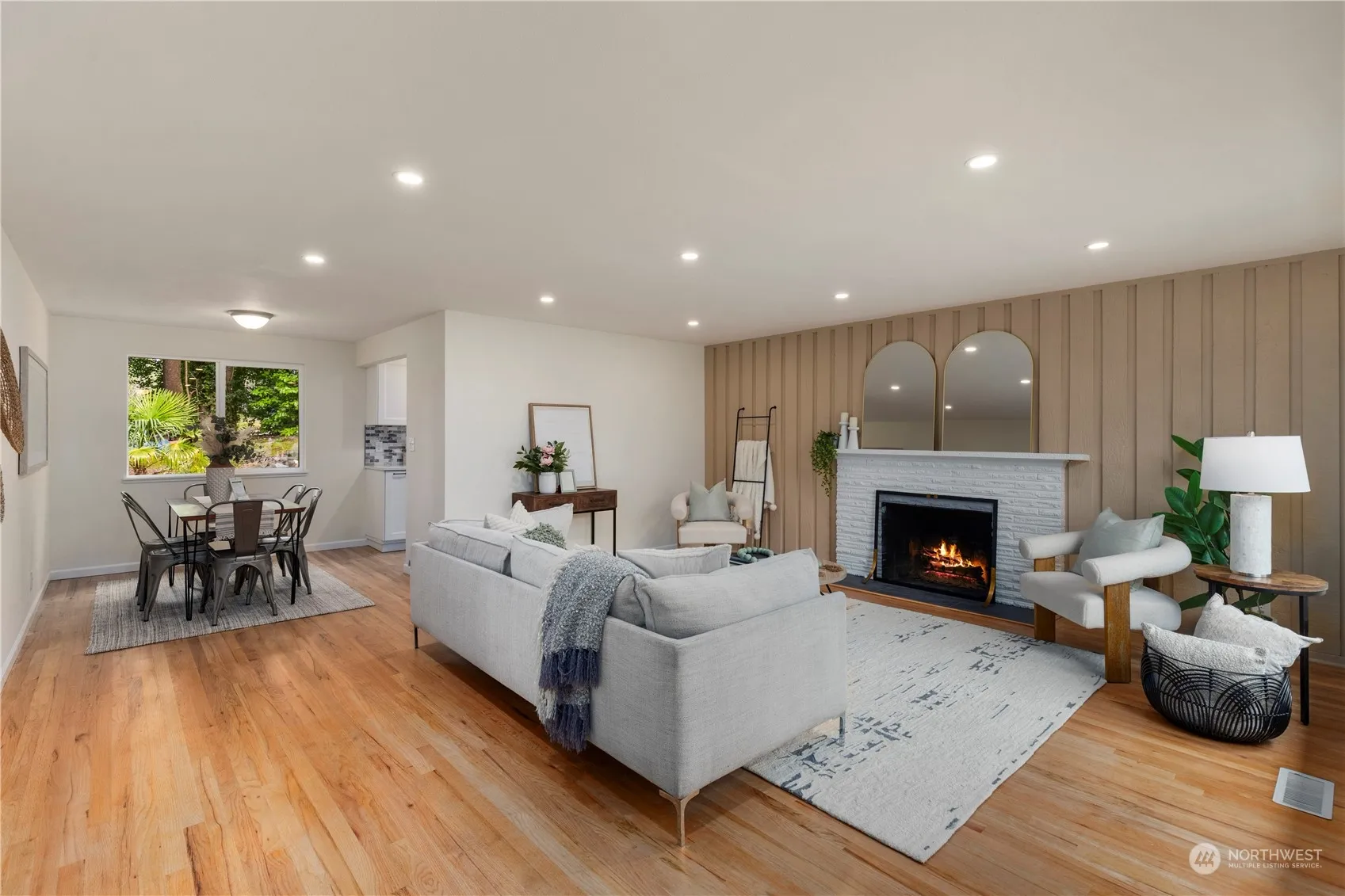 Fully renovated mid-century home with a light & airy layout, stylish finishes and modern upgrades. Three large bedrooms, 1.5 baths, sunny and open kitchen, living room w/cozy fireplace, park-like backyard w/lovely patio, outdoor fireplace, and water feature. Significant upgrades include: brand new roof, new plumbing & electrical throughout, new kitchen & appliances, new bathrooms, heated entry and bathroom floor, refinished hardwoods, new washer/dryer, updated lighting, new doors/trim/hardware, and fresh paint. Coveted Bellevue schools and excellent investment potential in a neighborhood of multi-million dollar homes. Move in ready & pre-inspected. Welcome Home!
