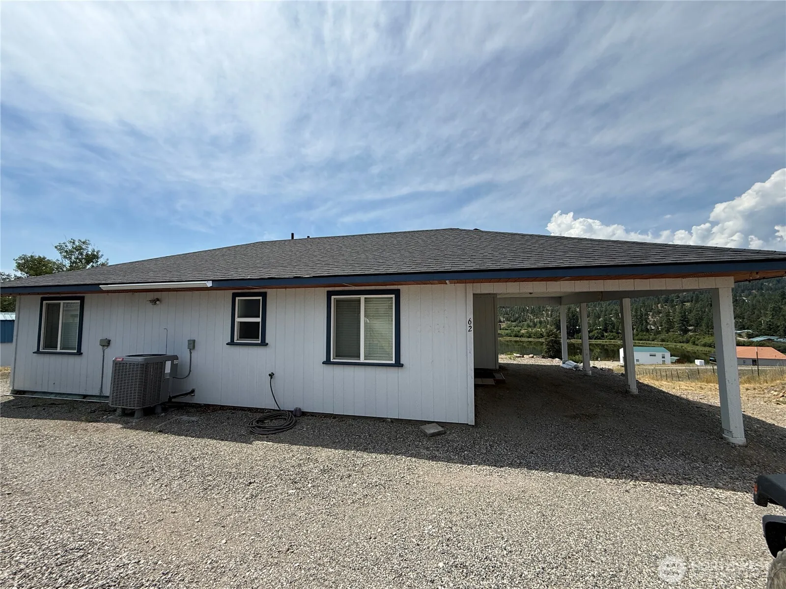 Beautiful views of Lake Roberta from the immaculately maintained frame built rancher. Light, bright and open floor plan with single level living. Nice kitchen with eat-at breakfast bar, stainless steel refrigerator, range and built-in microwave. The living room area has picture windows for taking in the lake and mountain view and a propane fireplace is perfect for those chilly fall & winter nights. Sit and enjoy sunsets from the deck. Property offers an attached carport, detached bunkhouse with 3/4 bath & loft, separate storage shed for all your toys! Large yard and access to the lake from the community dock/boat launch.