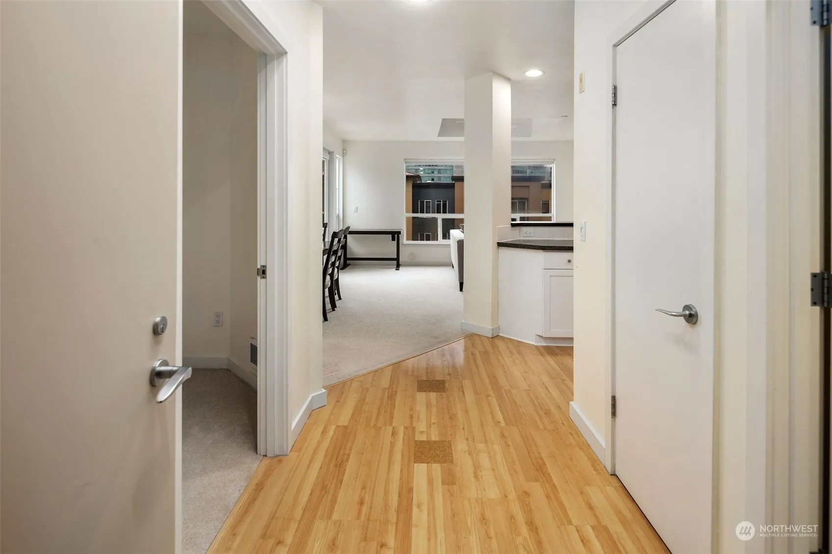 Welcome to your urban oasis in the heart of downtown Bellevue! This top-floor, end-unit penthouse offers unparalleled views of the vibrant city skyline. Wake up to the gentle morning light streaming in from the east-facing windows and skylight, bathing the home in natural radiance. Boasting two bedrooms and two baths, this unit is spacious and full of potential. With secure garage parking for two vehicles and a storage unit, convenience meets peace of mind. Enjoy the bustling energy of nearby shopping, dining, and recreation, all within easy reach. Elevate your lifestyle with this prime opportunity to customize your dream penthouse retreat.