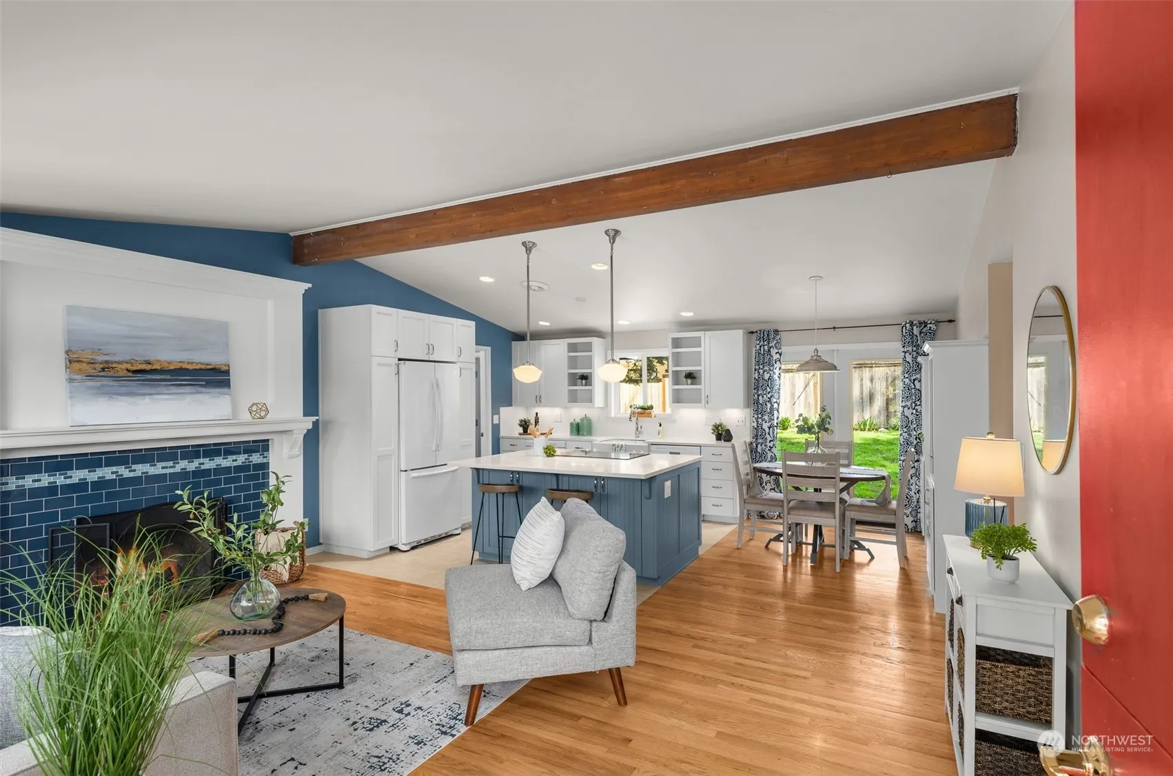 Exceptional Bellevue Rambler nestled in this coveted Bellevue neighborhood. This updated rambler offers easy single-floor living. Vaulted ceilings lend an airy, open feel to the living area, seamlessly transitioning into the beautifully renovated kitchen providing ample space for relaxation and entertaining. Step outside to a private, fully fenced backyard – the perfect setting for summer gatherings. A rare fenced-in front patio offers an great spot to enjoy warm evenings, creating a sense of privacy in the heart of the neighborhood. Rest easy, with a newer roof, updated electrical, with upgraded plumbing and A/C are a few of the upgrades. Don’t miss your chance to make this stunning Bellevue rambler your new sanctuary to call home.