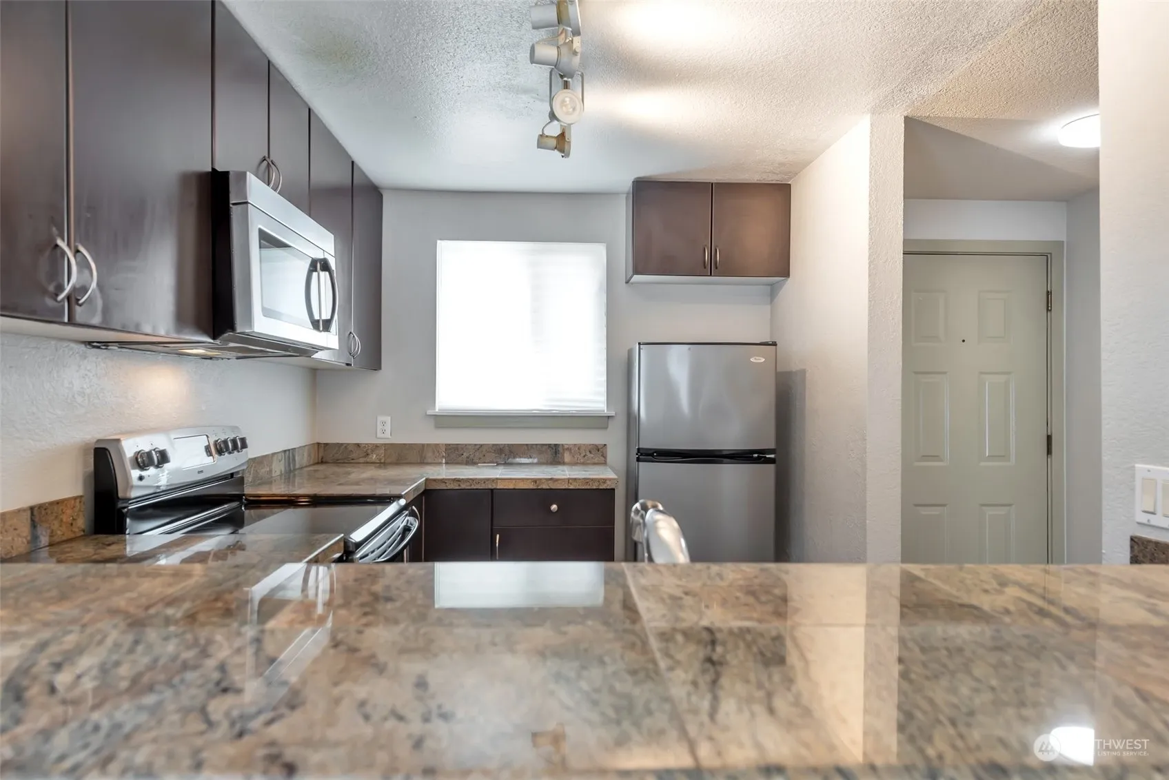 Discover the charm of this ground floor end unit condo! Fresh ceiling paint, brand new 50-gallon water heater, & new light fixtures in the kitchen & living space. The exterior features a new roof, siding, and windows, adding to the appeal of this 2-bedroom, 1-bath home. Inside, you’ll find an open kitchen, dining area, welcoming family room. Step outside to your patio with a view of the swimming pool, perfect for relaxing or entertaining. Parking is a breeze with two spaces just steps from your door. Explore nearby shops and eateries, easy access to I-90 & 405 for commuters. This complex offers low dues and top-notch amenities, including an outdoor pool and hot tub, making it a delightful place to call home. NO RENTAL CAP!