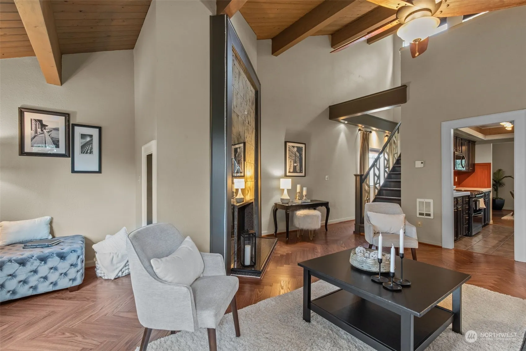 Nestled in Bridal Trails, this top-floor condo boasts 2 bedrooms plus a loft and 1.75 bathrooms. Renovated in 2015, it radiates modern elegance with designer herringbone floors, a Venetian glass fireplace, and vaulted ceilings. The layout seamlessly blends functionality and style, offering a luxurious master suite with a walk-through closet and a versatile flex room adaptable as a third bedroom, office, or gym. Centrally located, it grants access to Bellevue School District, nearby freeways, scenic trails, and top shopping spots. With 2 assigned parking spots and ample guest parking, convenience is paramount. Seize the opportunity to own a slice of upscale living in Bridal Trails’ coveted community. No rental cap!