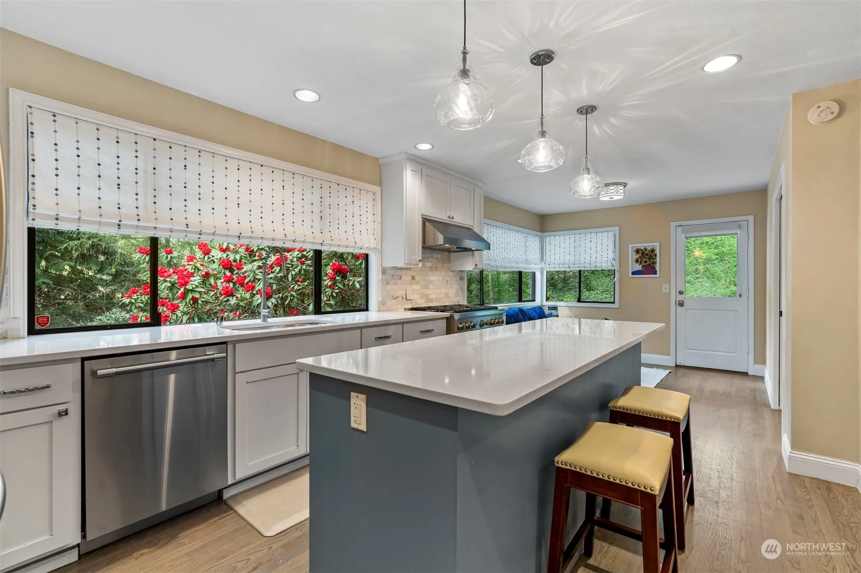 This beautiful home is in a tucked away cul de sac location in coveted Bridle Trails. It is the dream location with walking distance to Msft and shopping and entertainment are nearby. Outstanding schools! Extensive renovations have been done including a NEW roof and AC for those summer days. Beautiful white kitchen cabinets with quartz counters, and Thermador appliances with a cozy dining/coffee area. Refinished gray wood floors and stylish light fixtures. Sunken vaulted living room with an eye-catching cream stone fireplace. Large family room with wet bar and an electric fireplace. A private home office is on the main floor. Upstairs has the primary suite along with 3 spacious bedrooms. The backyard has a deck to entertain your guests.