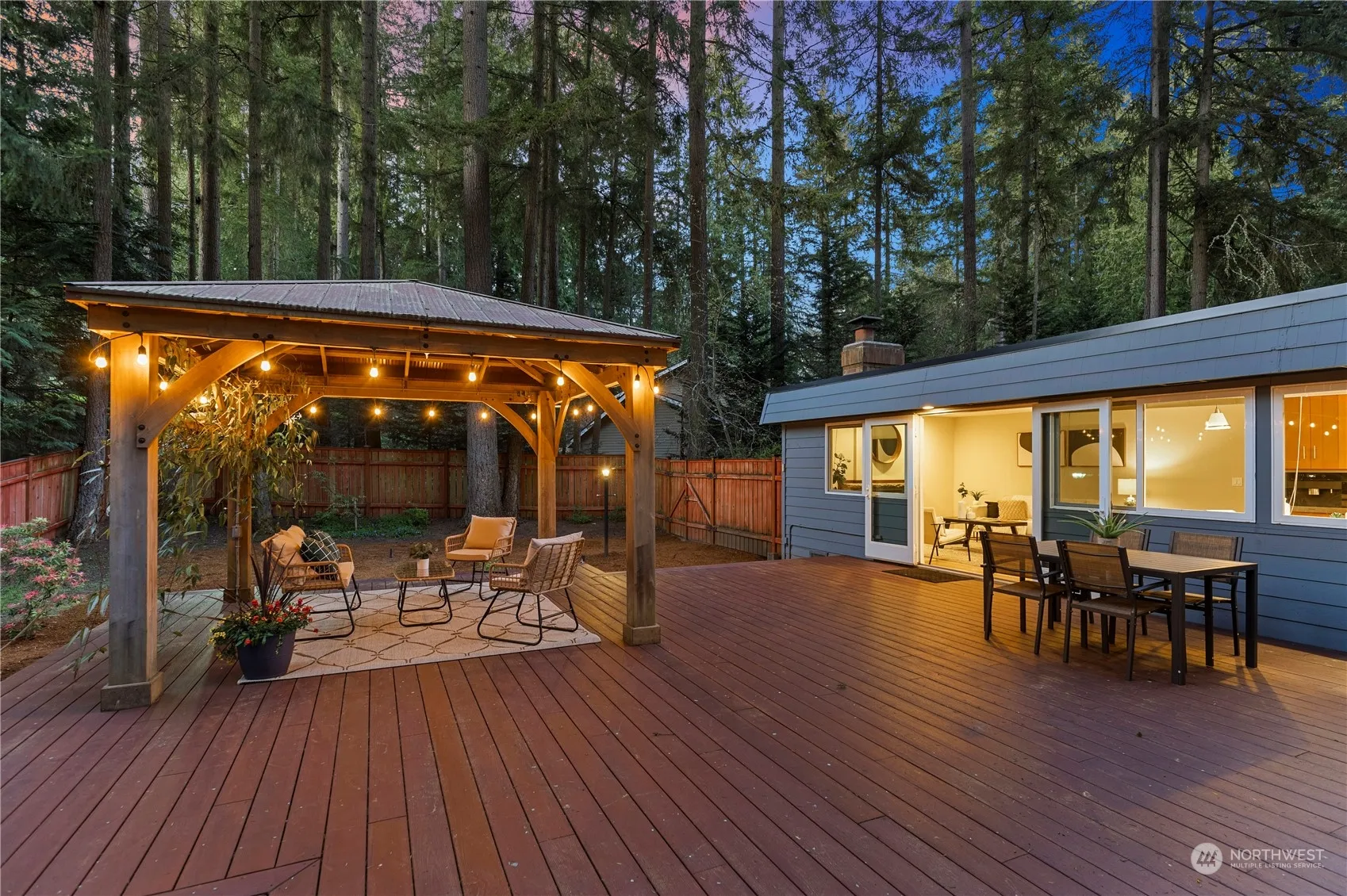 Discover luxury living in this stunning 4-bedroom home nestled in Bridle Trails. The kitchen features quartz counters, new SS appliances, warming drawer & a Miele’ coffee/espresso maker. Hardwood/laminate floors flow throughout, complementing the airy 10′ ceilings in the dining room. Updated baths offer quartz counters & custom tile. The primary suite features glass sliders to the deck, a spacious walk-in closet, & a lavish 5-pc ensuite with soaking tub & heated floors. Enjoy two fireplaces and A/C comfort. A new 2022 roof adds peace of mind. Outside, find a private backyard oasis with mature landscaping, a Trex deck, gazebo, & trails nearby. Cherry Crest Elementary is 5 minutes away, with convenient access to 405 & 520 for commuting ease!