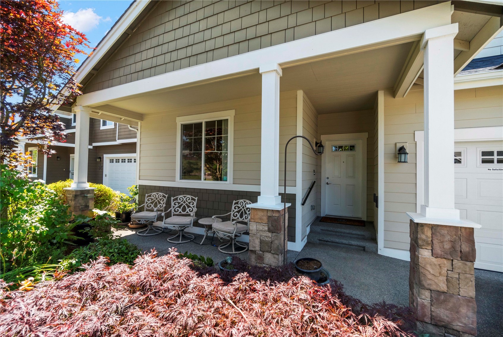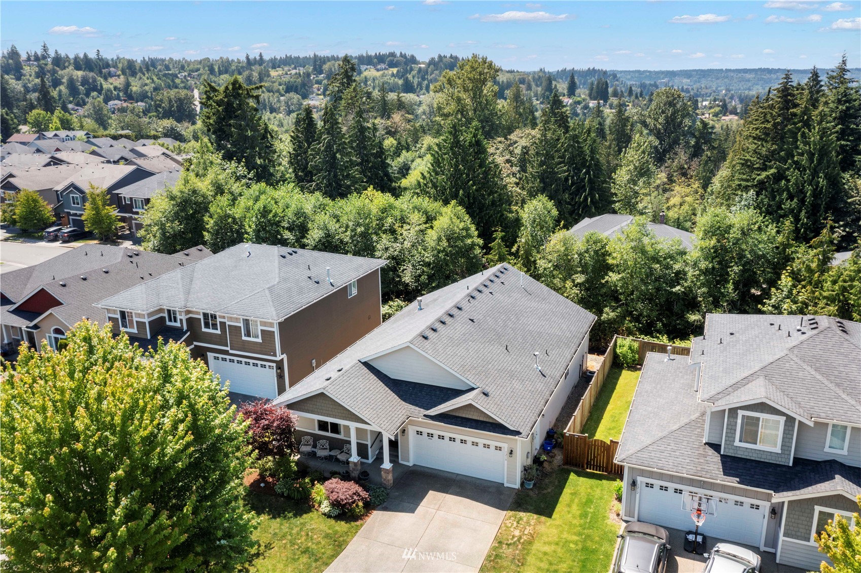 Do not let the market time detour you! Seller has been in the process of renovations, the home is now Ready for your Buyers, turn key and low maintenance. Gorgeous craftsman style rambler located in the desirable Puyallup Highlands community. Home features 1900 sq ft, 3 bedrooms, 2.5 bath (2 Primary Suites w/ private bathrooms). High vaulted ceiling through out entry, living rm, dining and kitchen, light and bright. Large living rm w/ stunning see through fireplace. Spacious kitchen with granite counter tops, 44 in upper cabinets, walk in pantry. Covered front porch, stone & shake accents, beautiful landscaping, big rear trex deck 10×16 ft. Stairs off deck leading to peaceful private patio area and open space. Central A/C