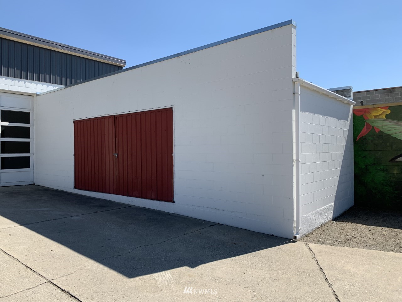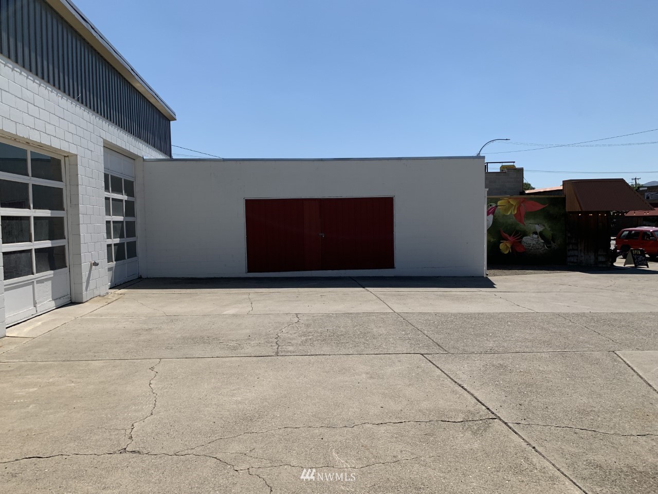 Large corner parcel (5 city lots). Roll-up doors with high ceilings. Large storage room off to the side. Office space with great view of main street. Large level area behind building, two restrooms; a storage room and sink inside the building. New metal roof, upgraded electric, city water and sewer. Prime location. Prior service station with all underground tanks removed and soil certified clean (legal documents available).