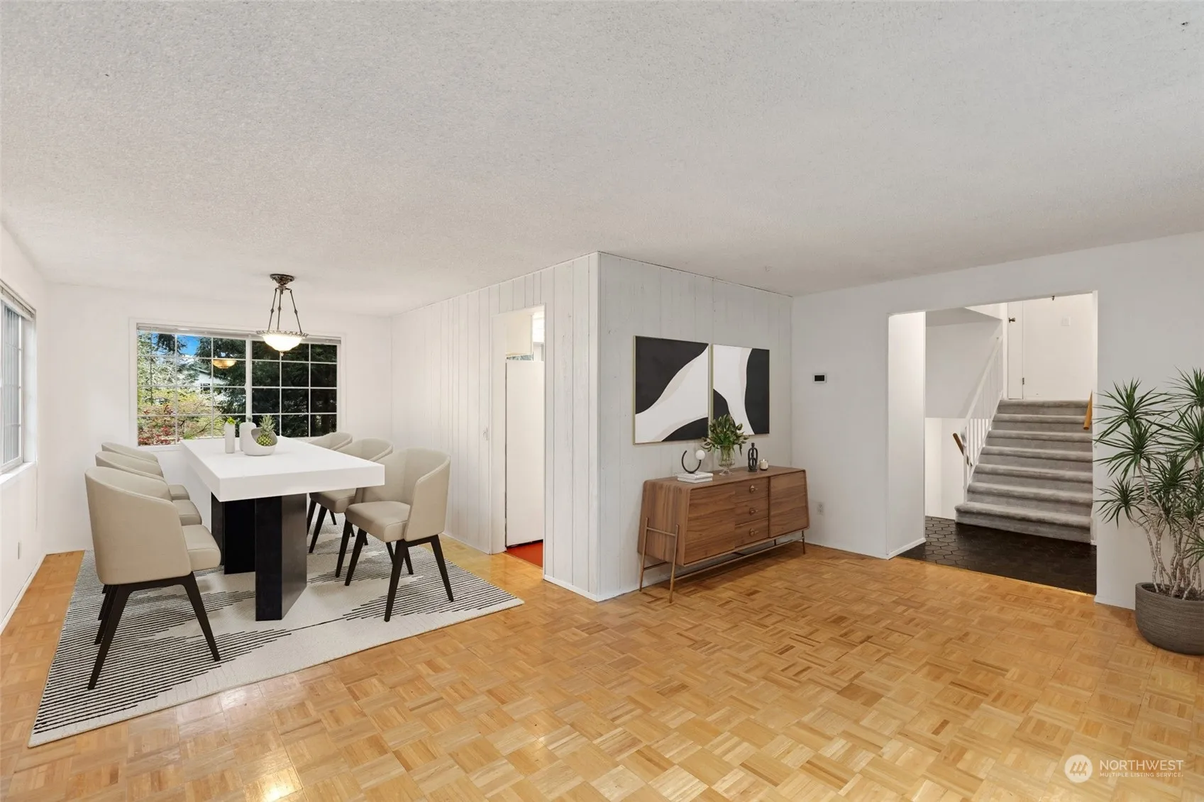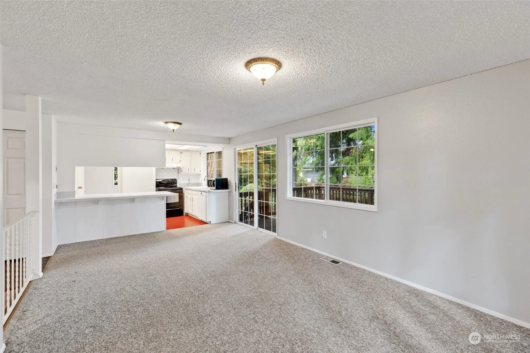 Welcome Home! Highly sought after location just blocks from Microsoft Campus! Large entry as you enter the home with living and dining room with hardwood floors and wood burning fireplace, Kitchen open to family room with slider out to the expansive deck and large fully fenced backyard. Yard features mature trees and plants and room to garden/play. 2 car garage is currently set up as 1 car with shop space and another bonus finished room that makes a great office or studio! Hardwired for CAT-6 ethernet. Close to local parks, lake, schools and shopping. Seller inspection available.