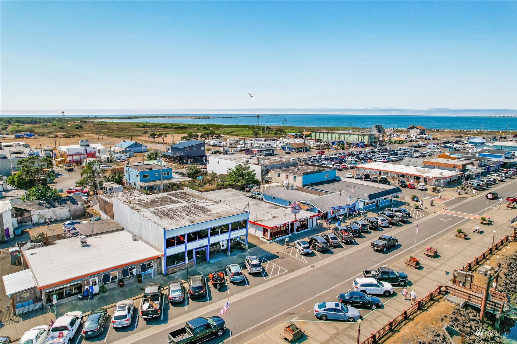 Overlooking the boardwalk, this two-story mixed-use property is one of the first buildings to welcome visitors to Westport’s historic Marina district. Take advantage of summer foot traffic with 2,806 square feet of potential retail space on the first floor, and enjoy the magnificent view of Grays Harbor from the 3,710 square foot second story. Originally a restaurant over first-floor retail, the current Mixed Use Tourist Commercial zoning opens the door to a wide range of uses, including residential over retail. Building is in shell condition. Two attached storage buildings total an additional 1,195 sq. ft. Bring your ideas and your architect to plan your new business. Possible owner contract w/ 50% LTV.