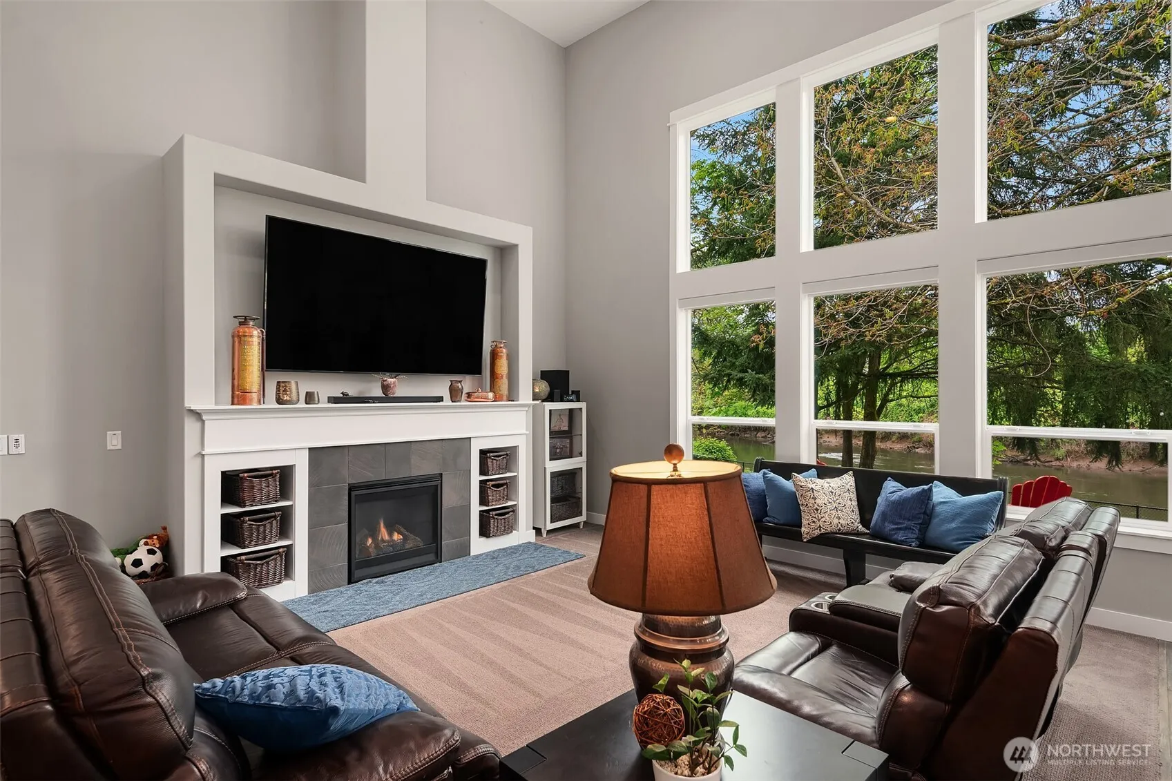 Impeccable Riverfront home built in 2021 by Garrett Homes. 4 glorious bedrooms, 2.5 baths, unique spaces & amenities highlight this exceptional property w/the Washington Backyard Wildlife Designation. 100 ft of Duwamish River frontage. Handsome great room, gourmet kitchen & windows from floor to ceiling allows expansive pastoral river view. Regal 9′ doors, wrought iron accents, custom millwork & viewing area creates a tranquil feel. Main floor Primary Suite is a sanctuary. Lush landscaping & mature trees surround the home providing privacy. Oversized 3 car garage has EV plug, state of the art mechanicals, air conditioning w/easy access. Once in a life time home is just minutes from Seattle, Parks, Schools, Golf & Shopping. A True PNW Gem!!!